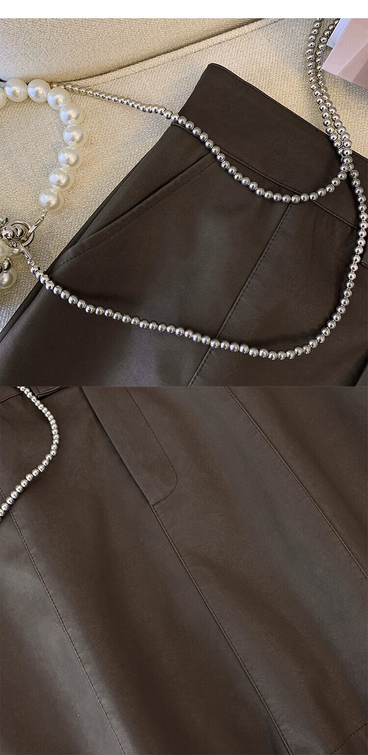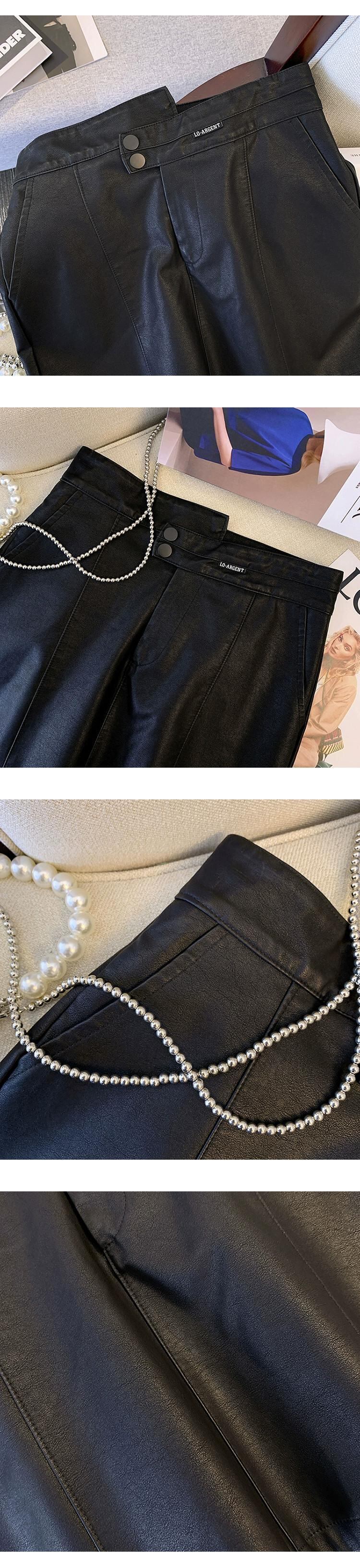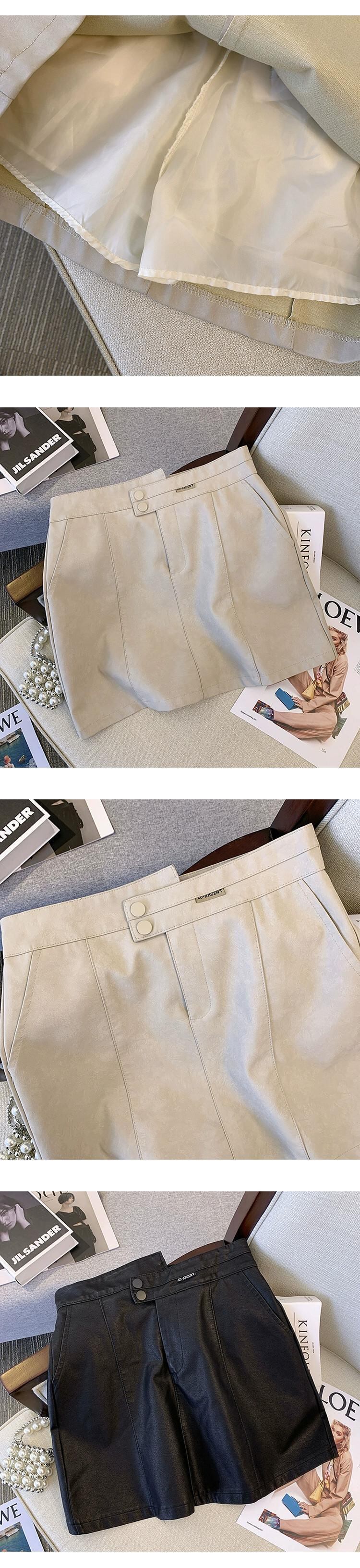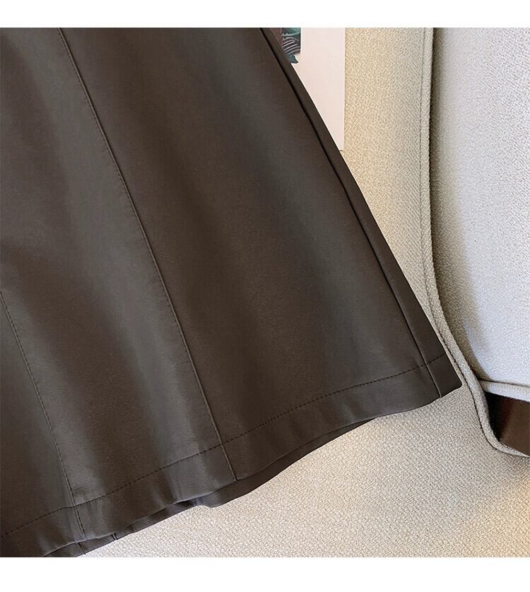 プラスサイズの秋の新しいファッショナブルなヨーロッパスタイルの PU レザーショートスカートファット mm 女性ハイウエストとスリム A ラインヒップスカート ハイウェスト 大きめサイズ オータム 秋物 Aライン ヨーロピアン 8884157569810453
