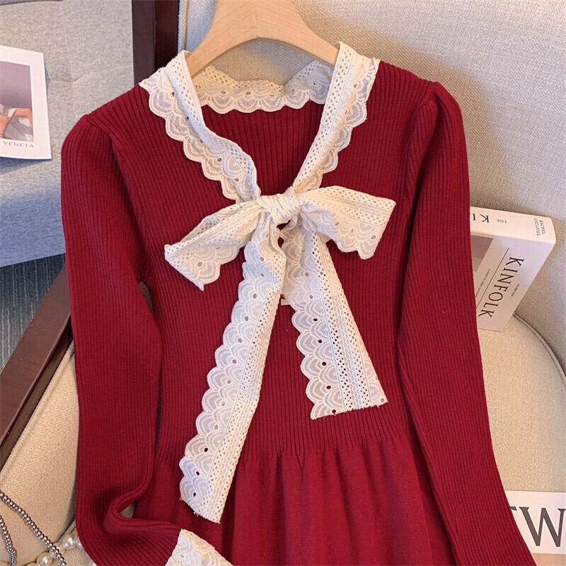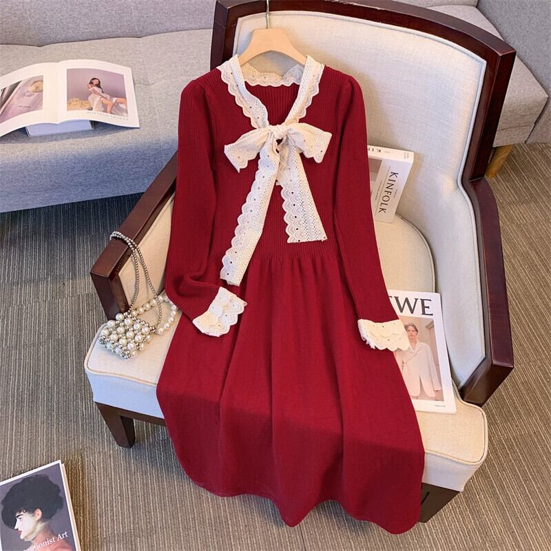プラスサイズの女性の脂肪ミリメートルウエストカバー腹ニットドレス冬の新 2023 ハイエンド絶妙なヘボンスタイル A ラインスカート 大きめサイズ ウィンター 冬物 Aライン 8884131747504847