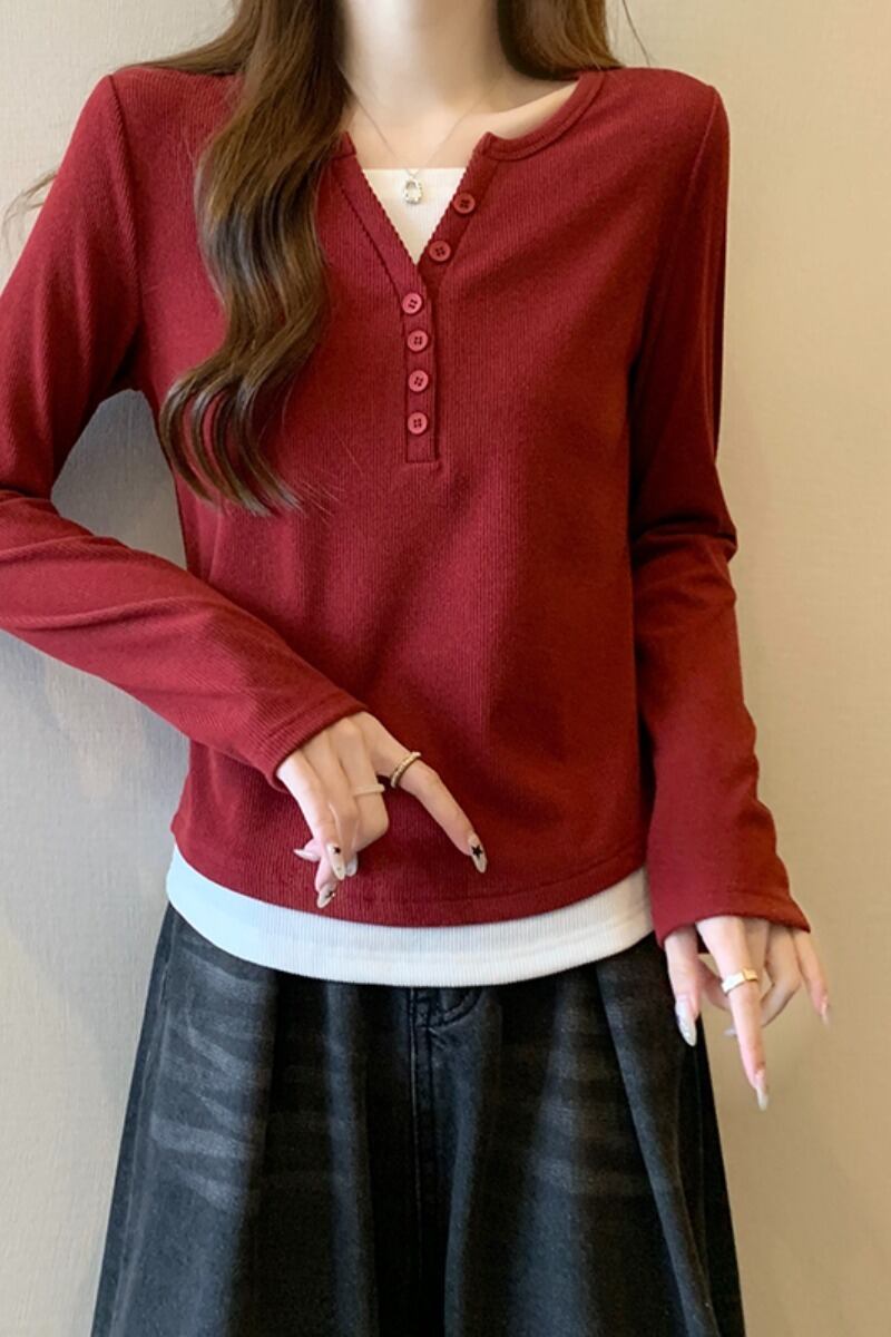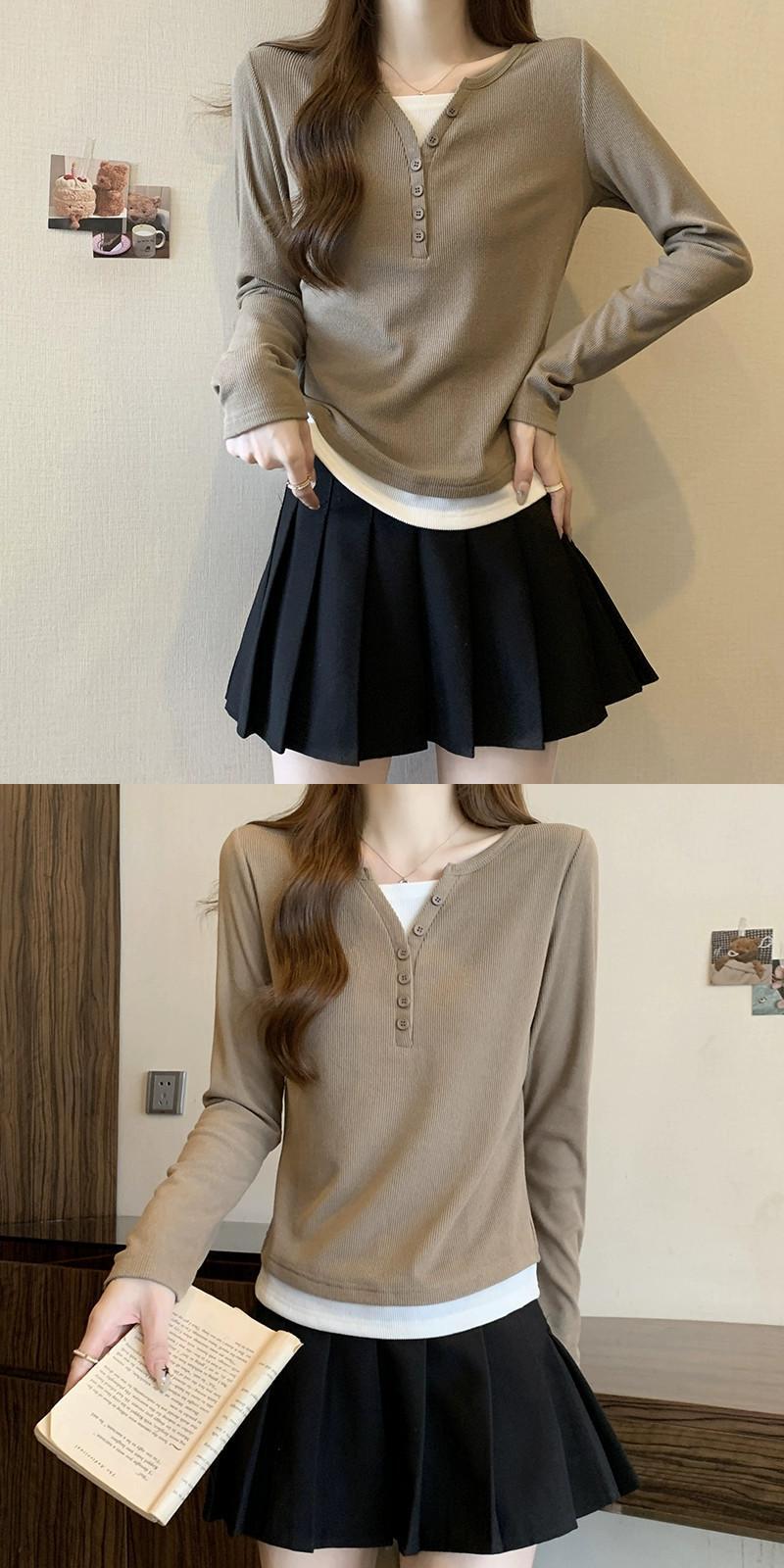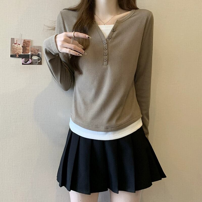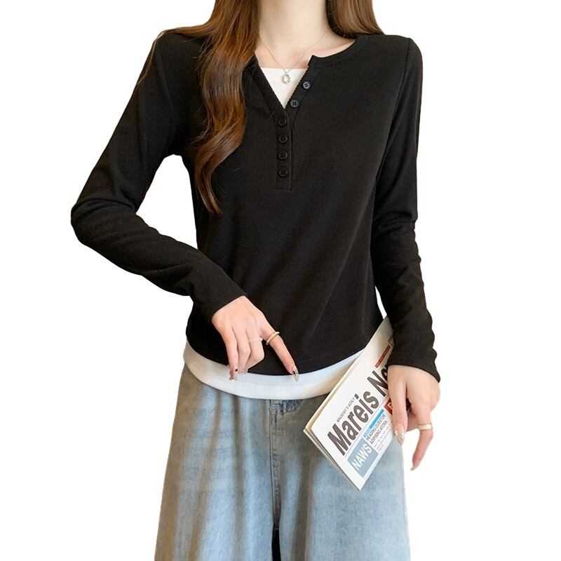 プラスサイズの女性の脂肪 mm 秋の新 2023 偽ツーピース多用途気質 T シャツハイエンドファッショントップトレンド 大きめサイズ オータム 秋物 Tシャツ 8884116699105070