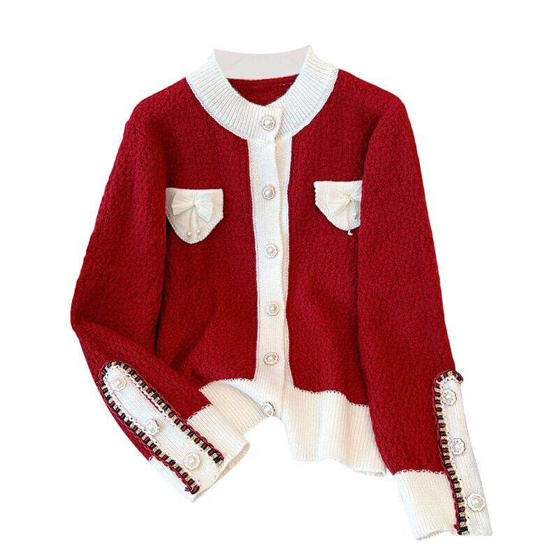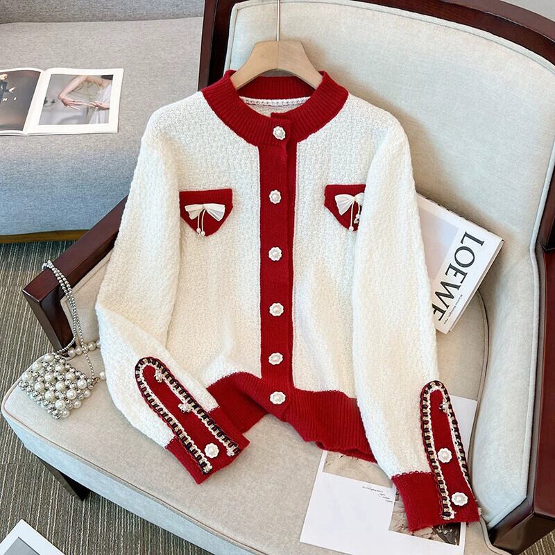 レトロな赤のセータージャケットの女性の冬の新しい大きいサイズ脂肪ミリメートルファッショナブルな年齢削減痩身カーディガンニットトップトレンディ レッド 大きめサイズ ウィンター 冬物 8884139688699623