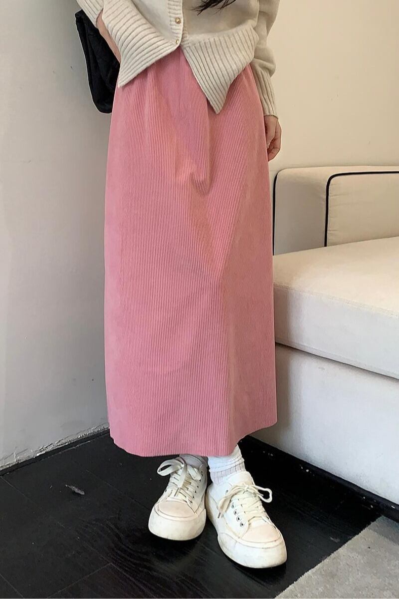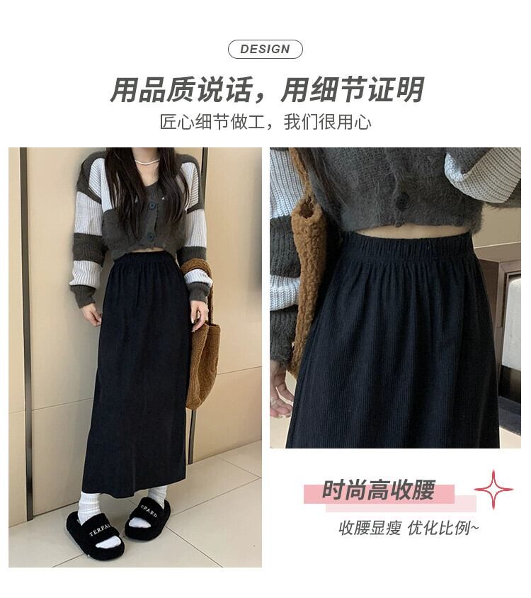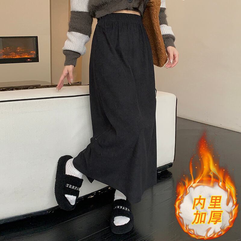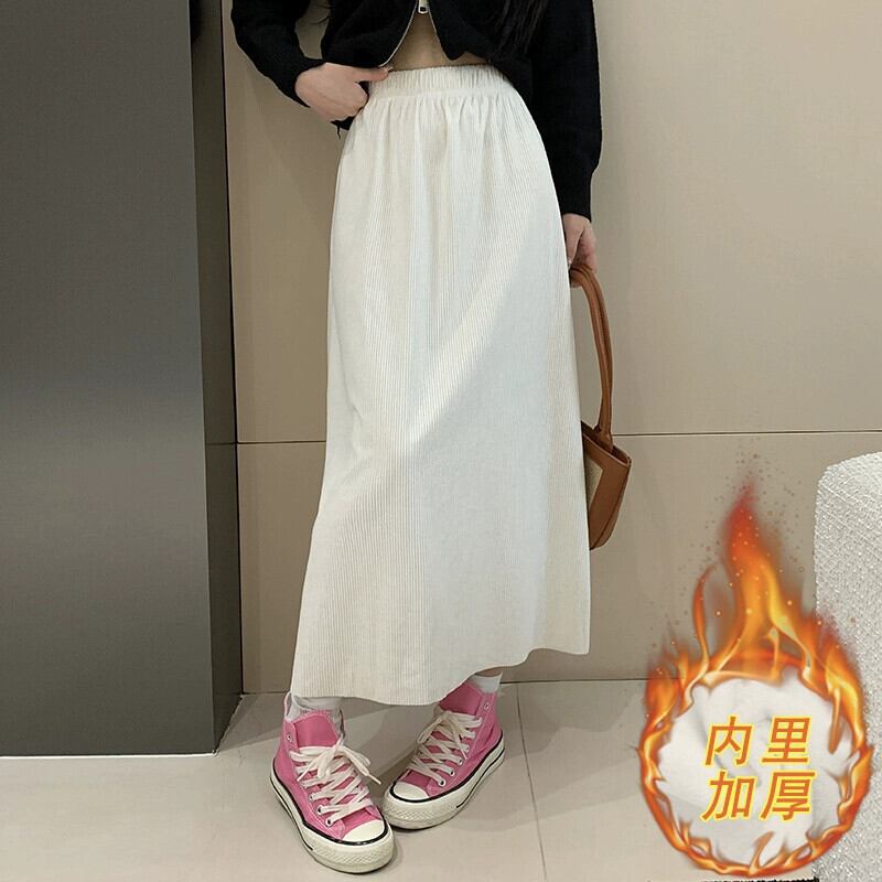 プラスサイズ脂肪 MM 弾性ウエストプラスベルベット肥厚スカート女性の新しい秋と冬のストレートスリット痩身 A ラインロングスカート エラスティック 伸縮 大きめサイズ オータム 秋物 ウィンター 冬物 Aライン 8884172787040969