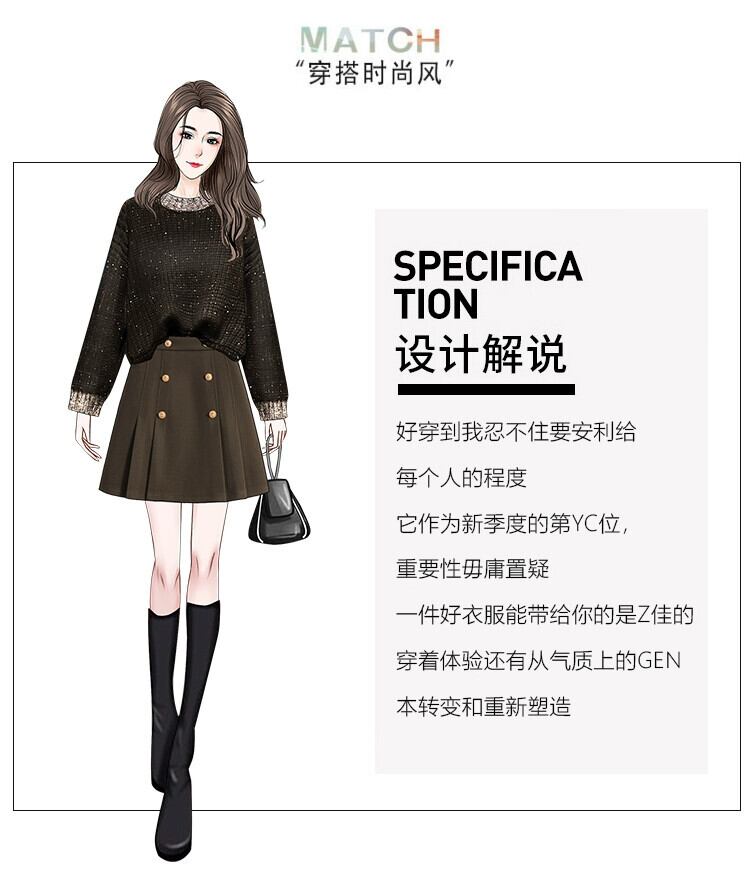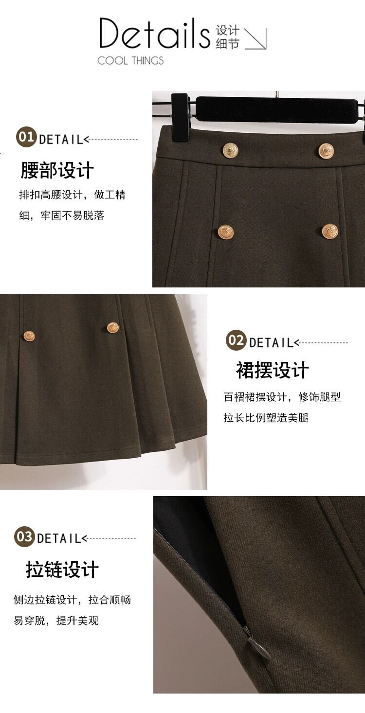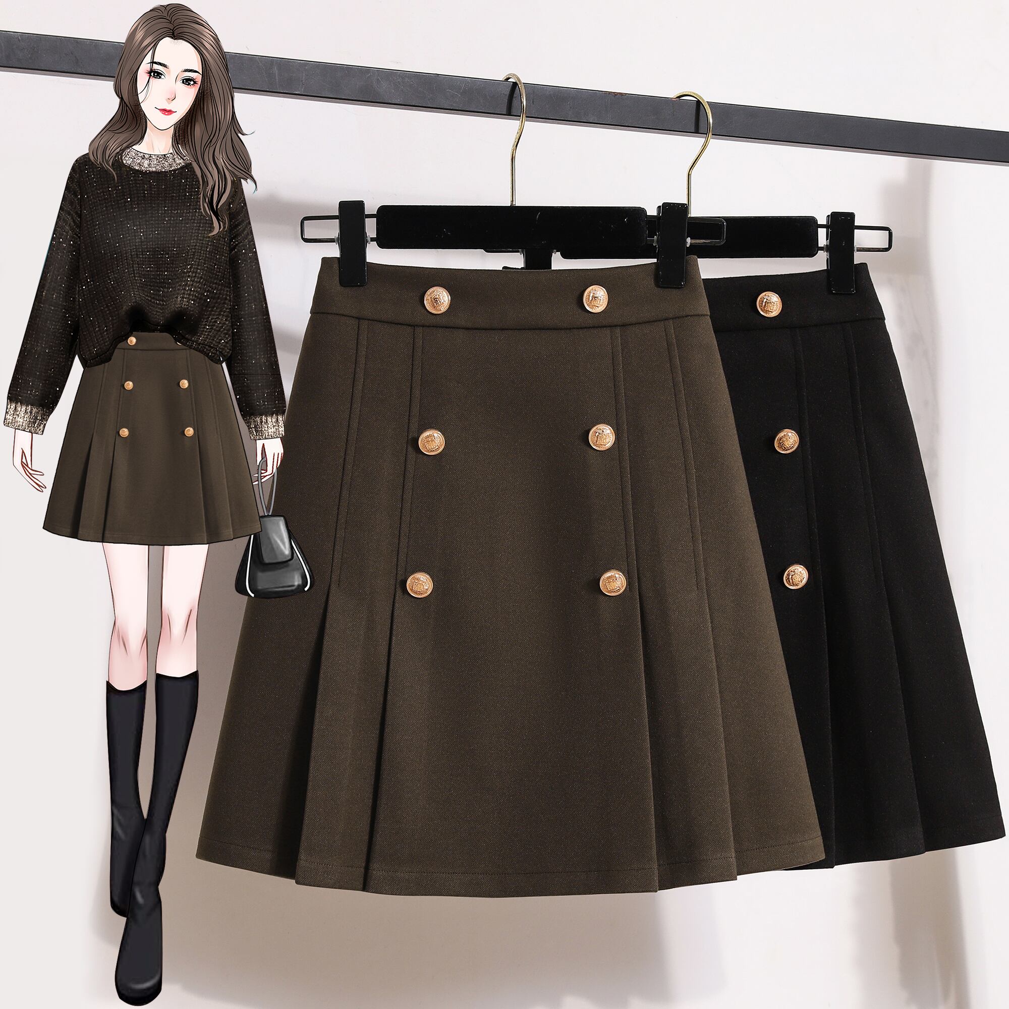 プラスサイズ 2023 秋と冬の新しいファットシスター女性の無地ハイウエストスリムレトロ A ラインプリーツスカートトレンディな ハイウェスト 大きめサイズ オータム 秋物 ウィンター 冬物 Aライン ソリッドカラー 8884150482100079