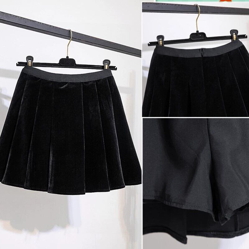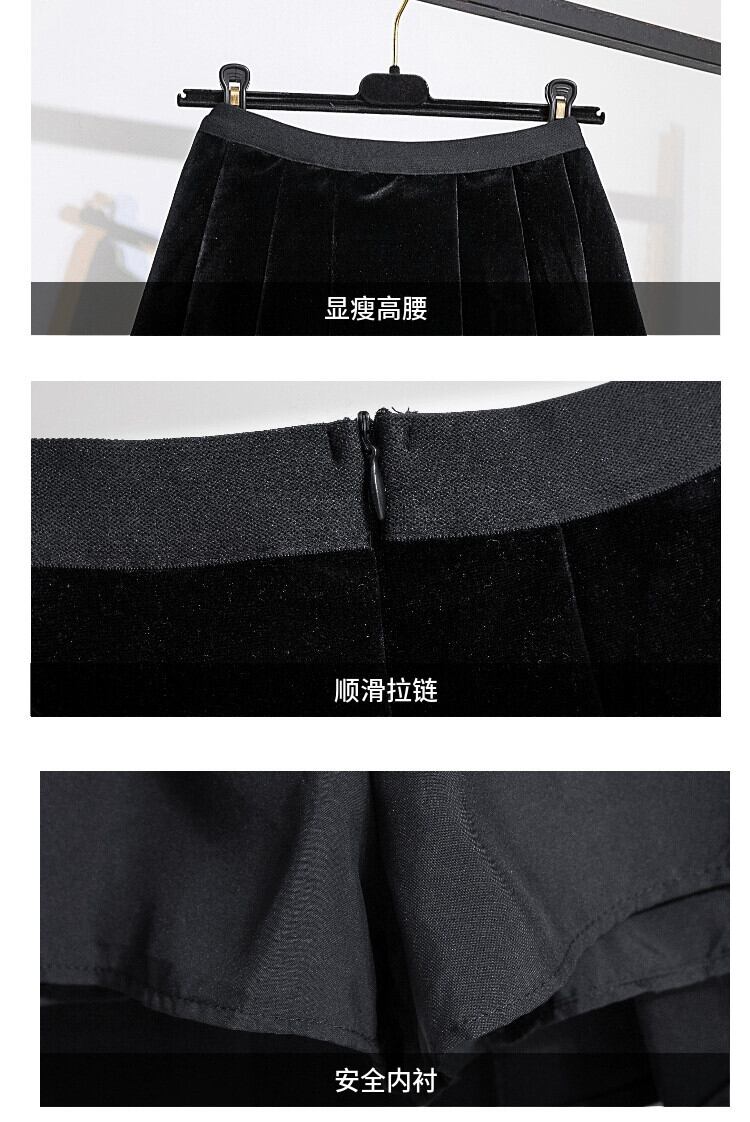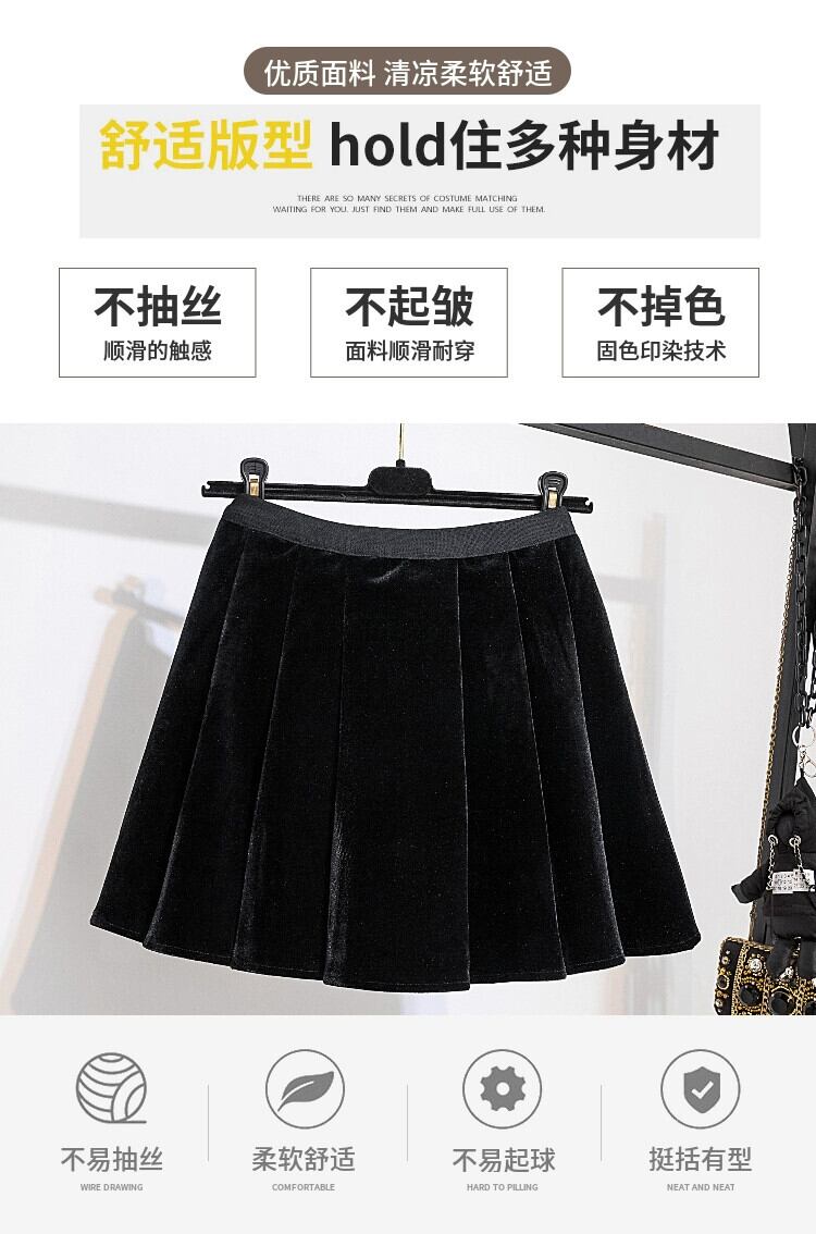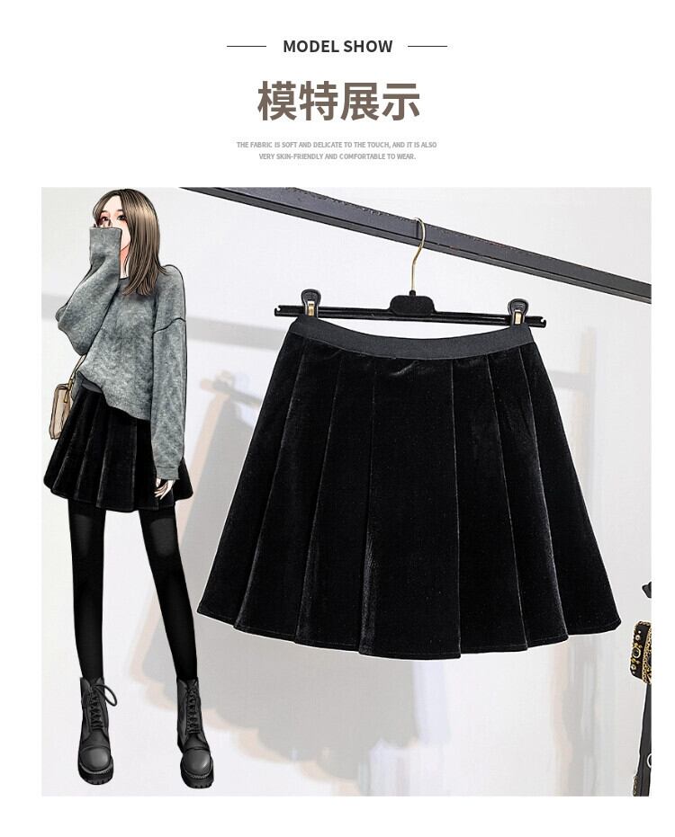 大きいサイズ脂肪ミリメートル 2023 新しい冬服露出防止ハイウエストスリムゴールドベルベットプリーツ A ラインスカートトレンディな 大きめサイズ ウィンター 冬物 Aライン 888413323454387