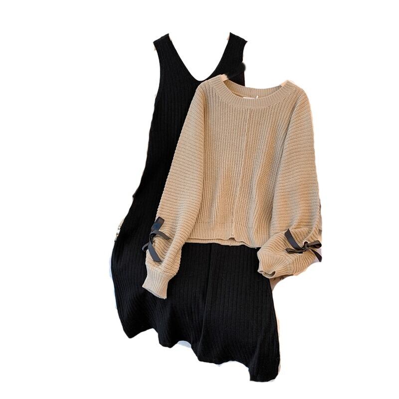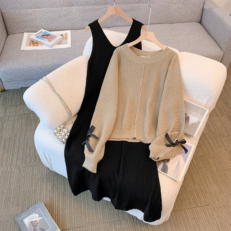 プラスサイズの婦人服ファット mm 秋の新 2023 ハイエンド多用途セータースーツファッショナブルな気質ベストスカート 2 点セット 大きめサイズ オータム 秋物 8884193305713039