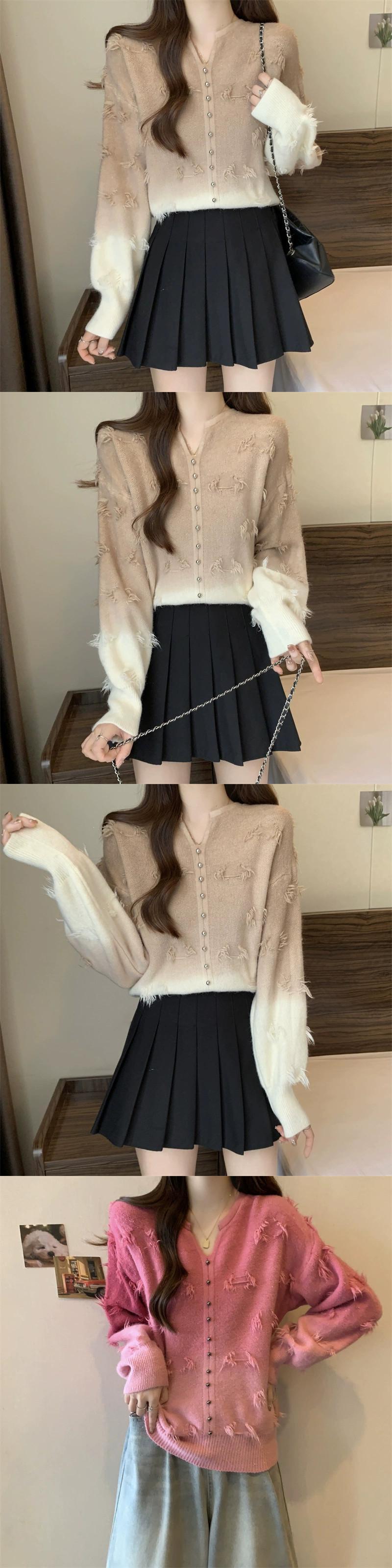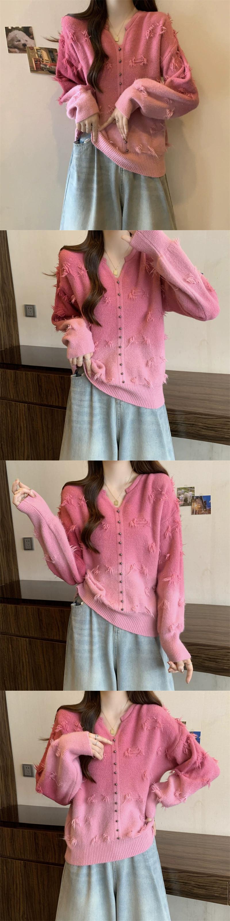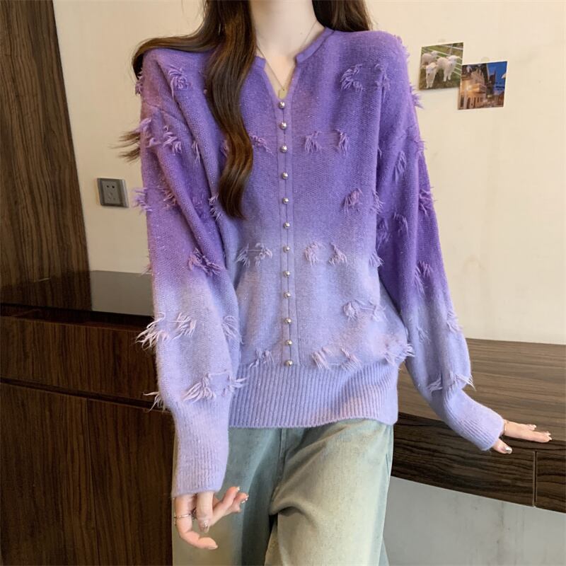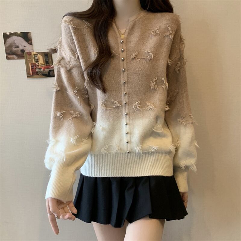 プラスサイズの女性の脂肪 mm 秋冬の新スタイル 2023 eign ファッショングラデーションカラーデザインニッチボタンアウタートップ 大きめサイズ オータム 秋物 ウィンター 冬物 8884155886447750