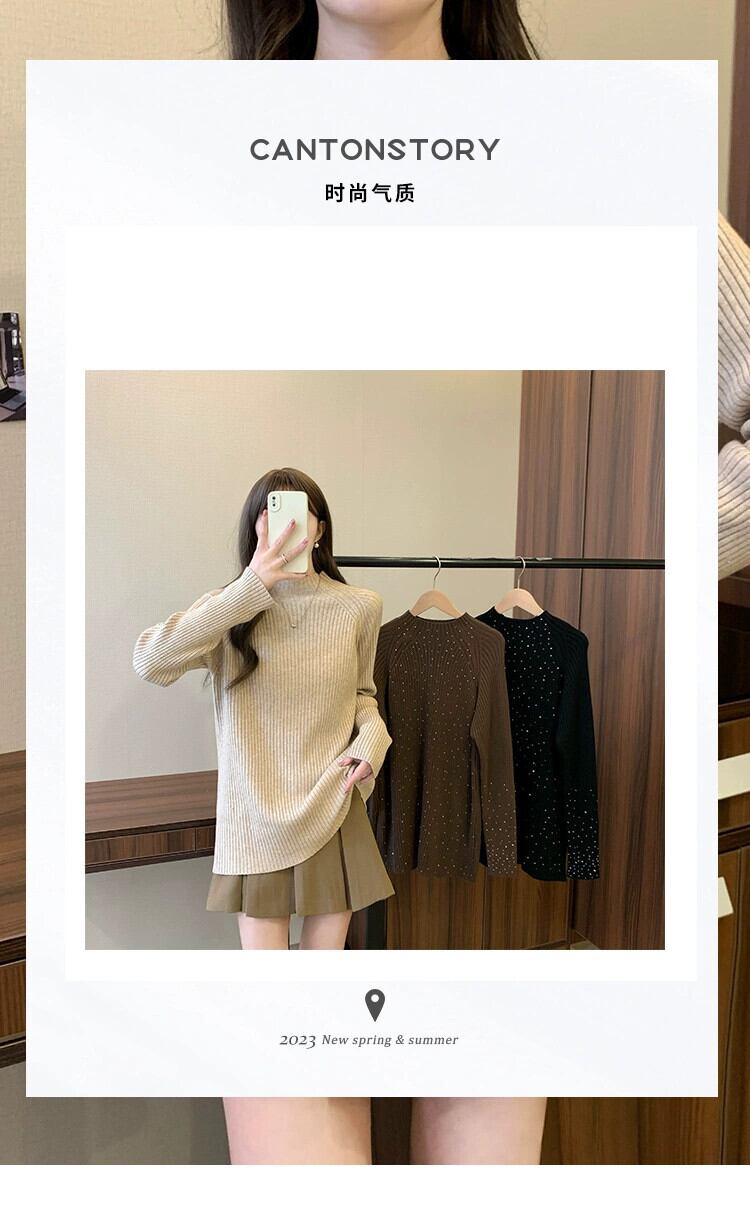 プラスサイズの女性の脂肪 mm 気質スタイルハーフタートルネックセーター冬の新 2023 ダイヤモンドがちりばめられた肌の年齢を減らすトップ 大きめサイズ ウィンター 冬物 8884117323193573