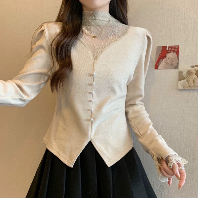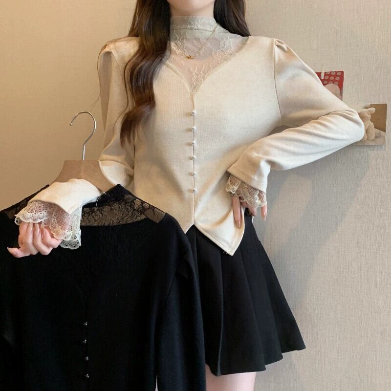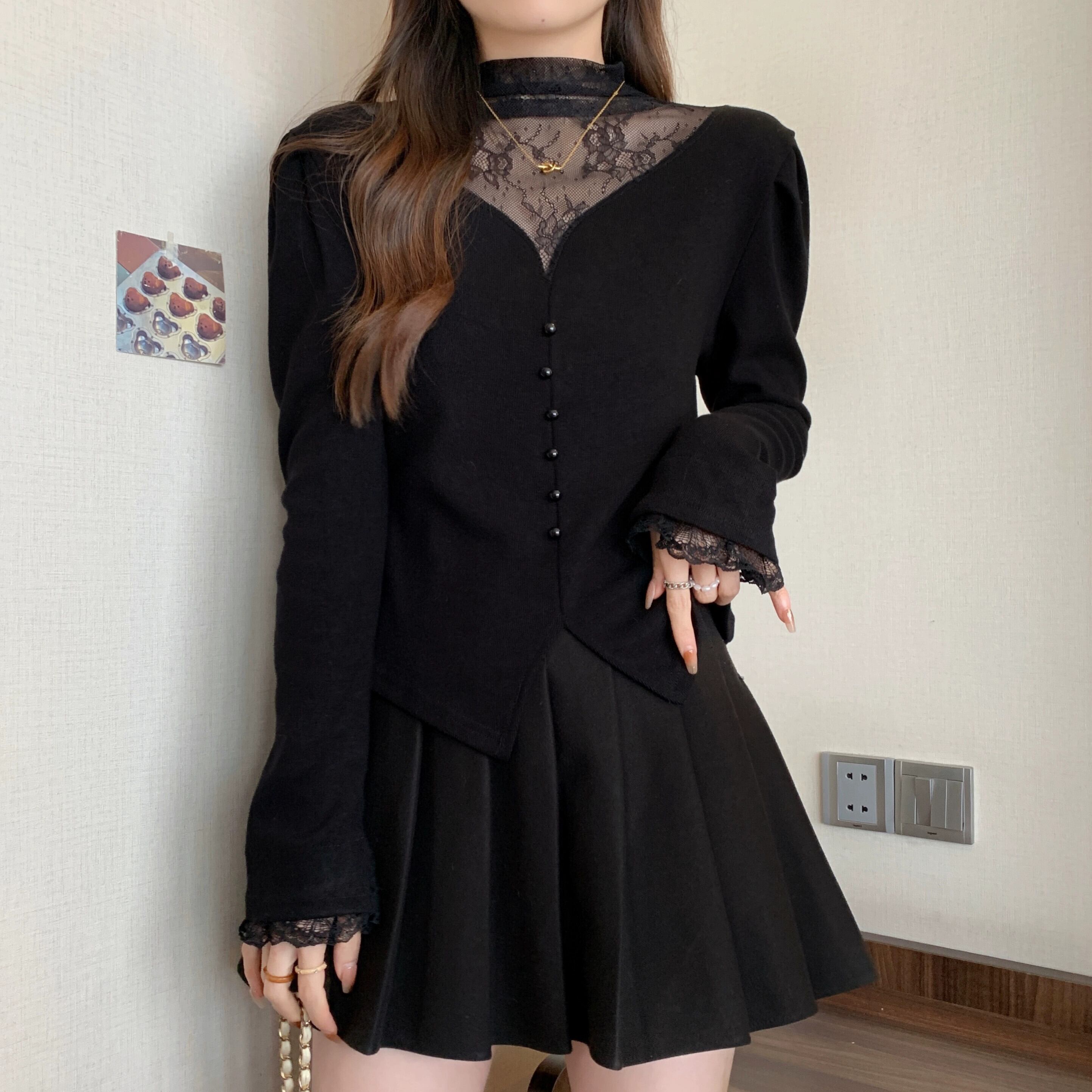 プラスサイズの婦人服ファット mm 秋と冬の新スタイル 2023 フレンチレーススプライシングセーター不規則な底シャツトレンディなトップス 大きめサイズ オータム 秋物 ウィンター 冬物 8884138833463483