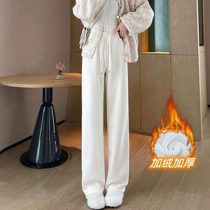 大きいサイズ 2023 秋冬トレンディなナローワイドレッグパンツ女性プラスベルベット肥厚ハイウエストドレープカジュアルシェニールストレートパンツ 大きめサイズ オータム 秋物 ウィンター 冬物 8884177145870841