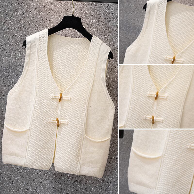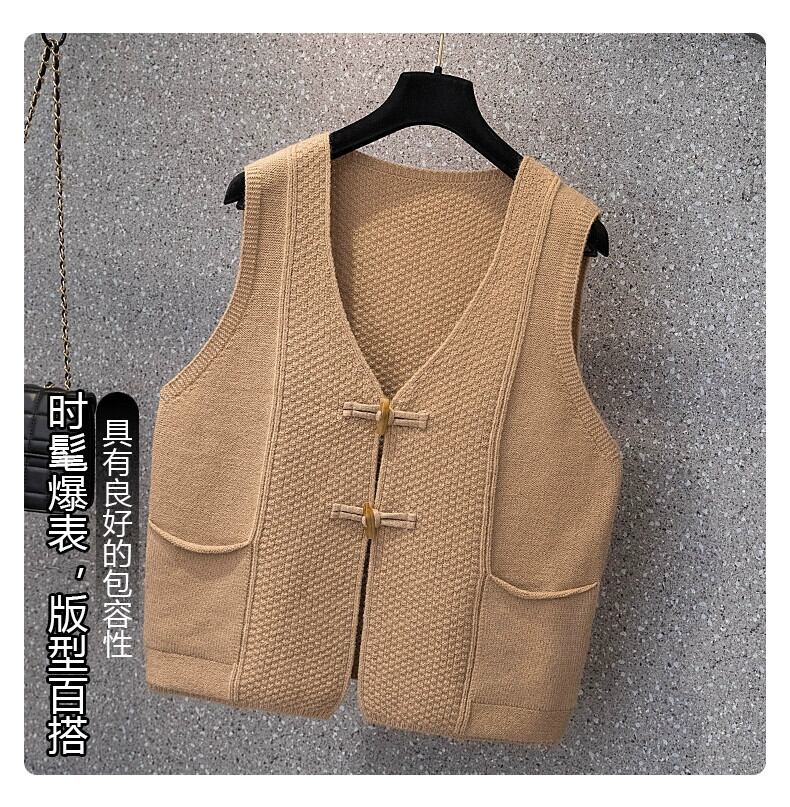 プラスサイズの女性の秋の新スタイル 2023 ファットシスターファッショナブルな無地ルーズでスリムな V ネックノースリーブセーターベスト 大きめサイズ オータム 秋物 Vネック ソリッドカラー 8884184083193754