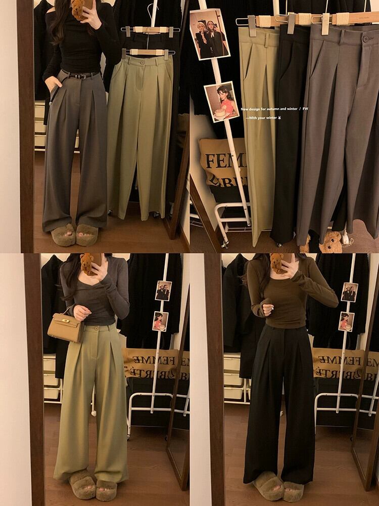 プラスサイズファットMMカジュアルパンツレディース秋冬デザインルーズスリムスーツパンツワイドレッグパンツハイウエストドレープフロアモップパンツ ハイウェスト 大きめサイズ オータム 秋物 ウィンター 冬物 ワイドパンツ 8884188000056164