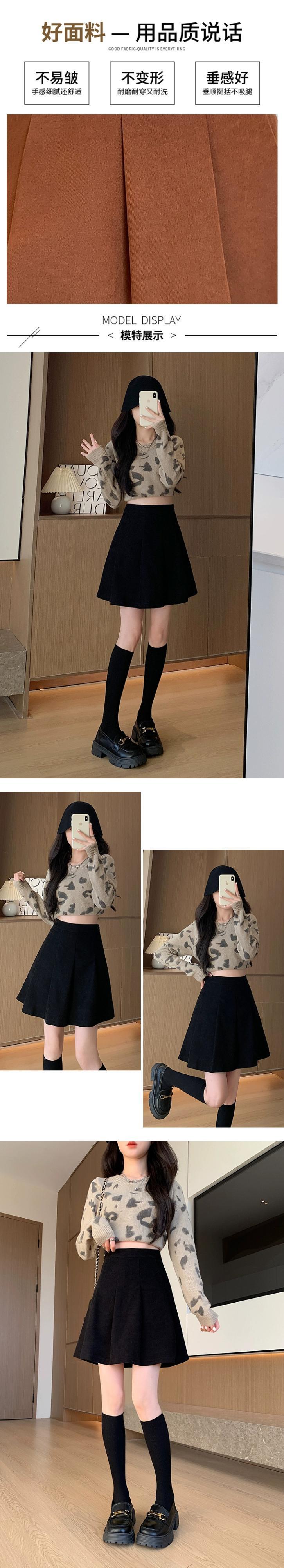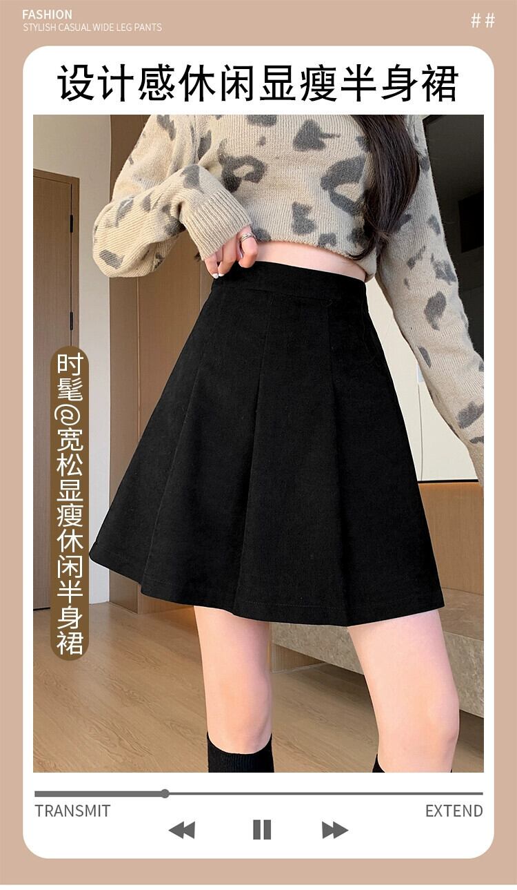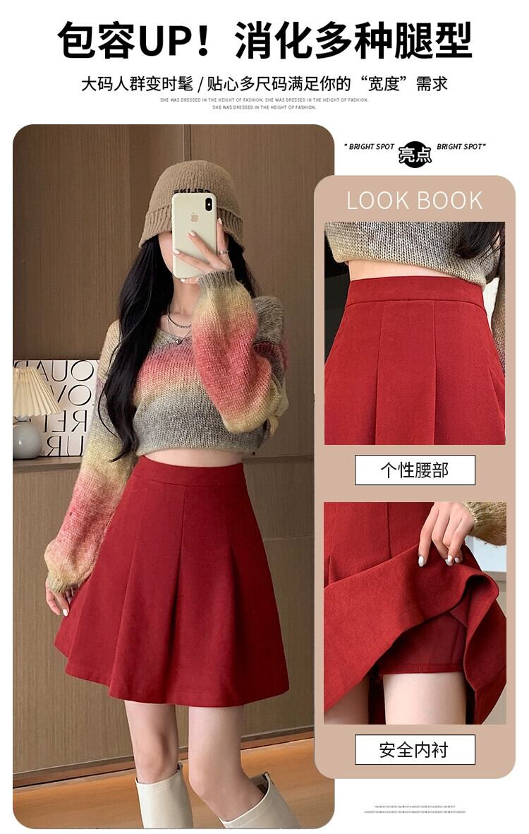大きいサイズのハイウエストスリムプリーツショートスカートの女性は、冬のカレッジスタイルで少し太ったmmの厚みのある露出防止Aラインスカート ハイウェスト 大きめサイズ ウィンター 冬物 8884193180344698