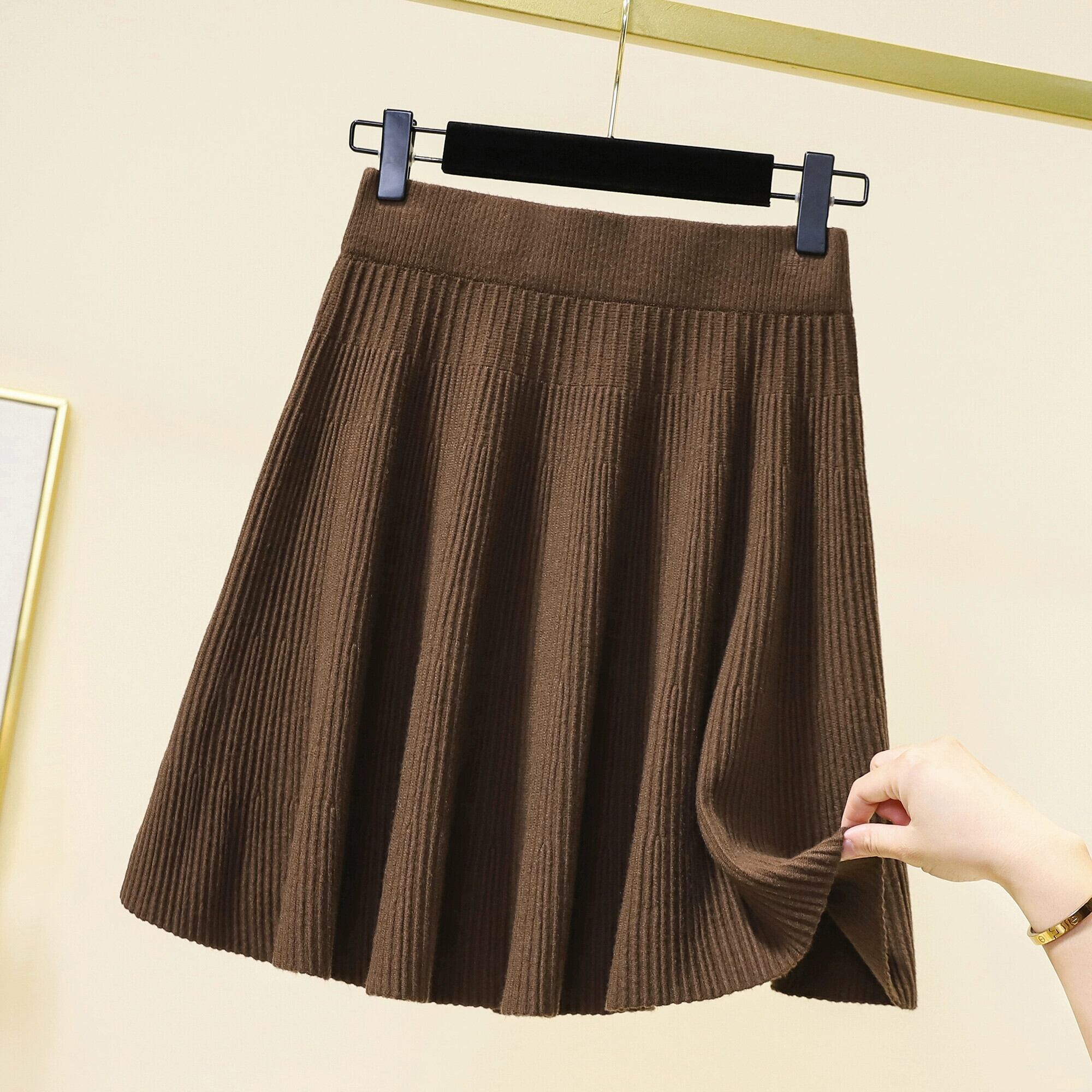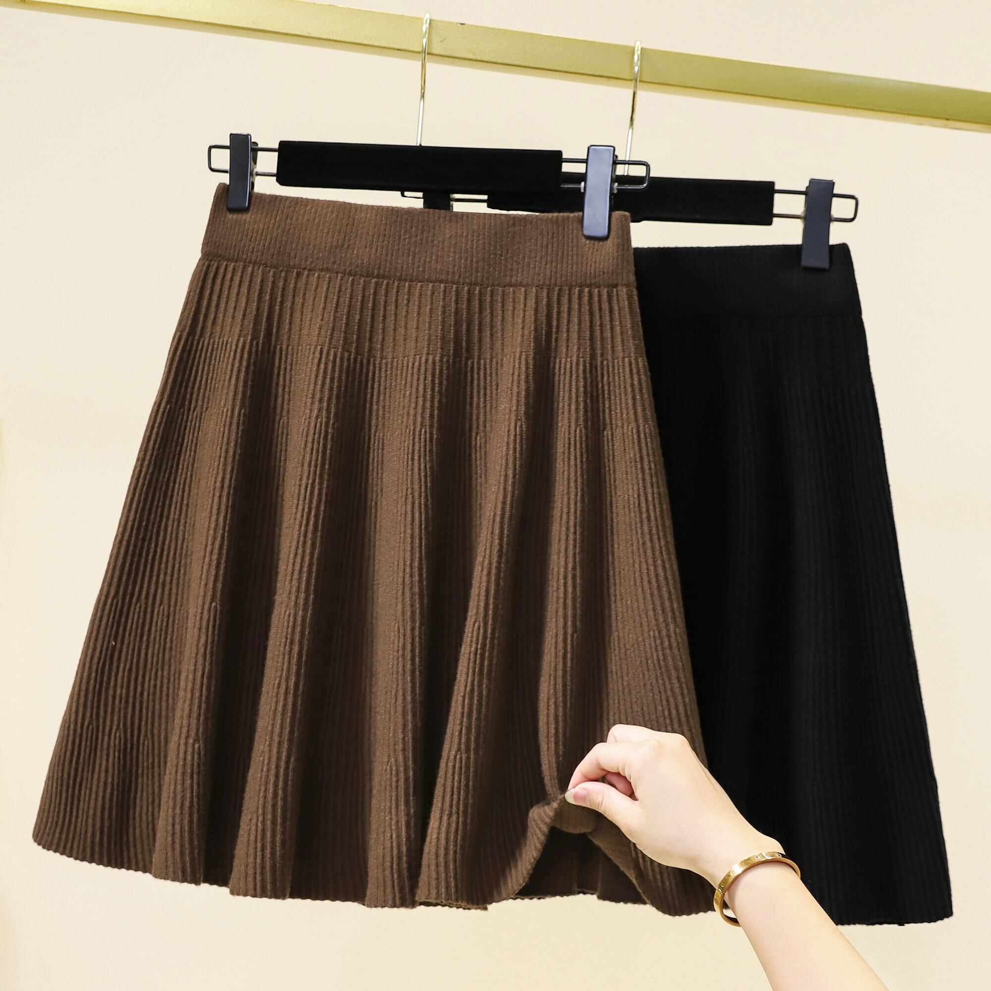大きいサイズのニットスカートの女性 2023 冬の新スタイルわずかに太いミリメートルハイウエスト痩身 a ラインプリーツショートスカートトレンディな ハイウェスト 大きめサイズ ウィンター 冬物 Aライン 8884119578553590