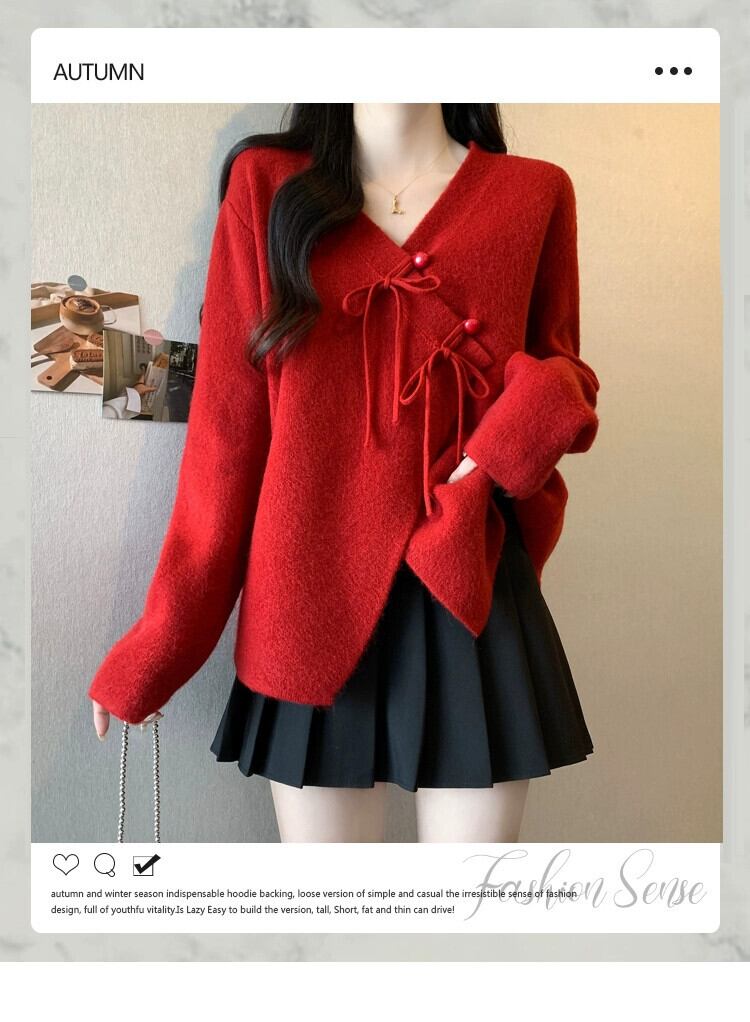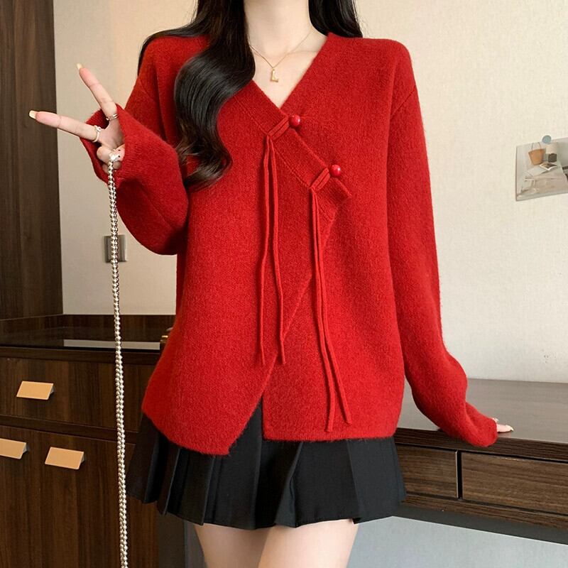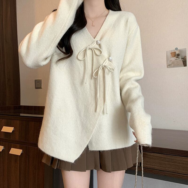 プラスサイズの女性の脂肪 mm ルーズ怠惰なスタイルのセーター冬の新 2023 ニッチ V ネックカーディガンは肉のトップをカバーします 大きめサイズ ウィンター 冬物 Vネック 8884151668682745