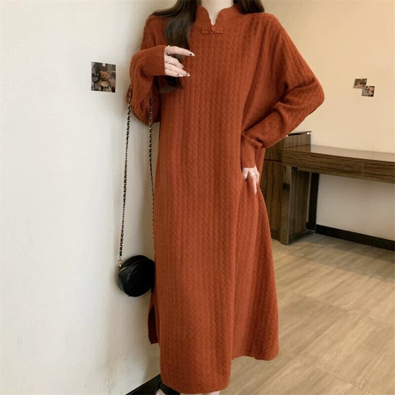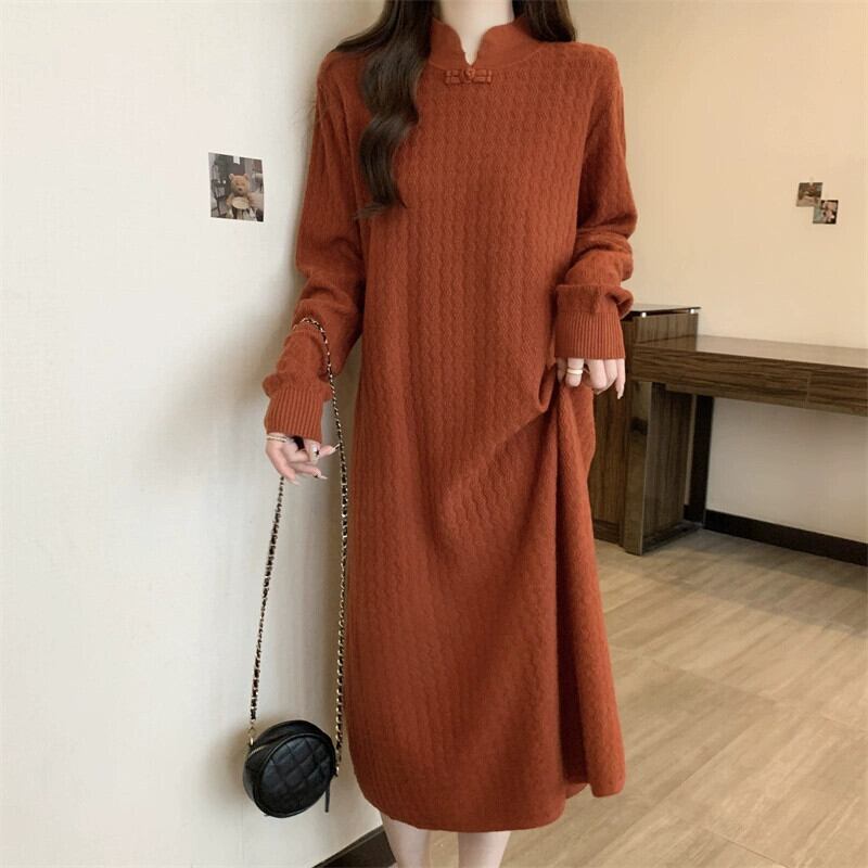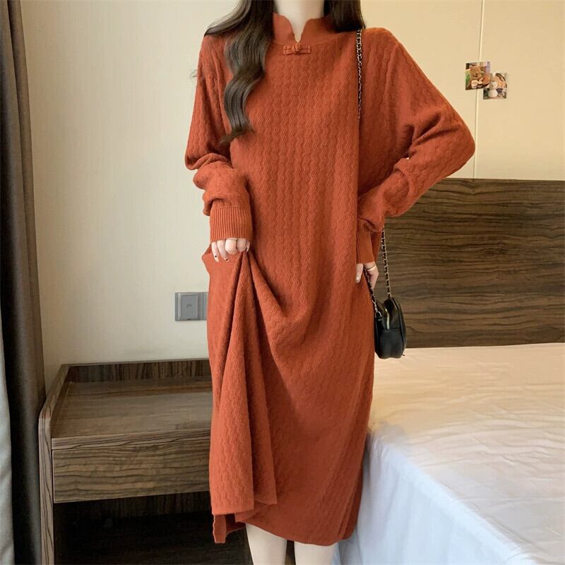 プラスサイズの婦人服ファットmm冬新作2023ニッチハイエンド気質ドレス痩身と肉をカバーするミドル丈スカートトレンド 大きめサイズ ウィンター 冬物 8884134418512822