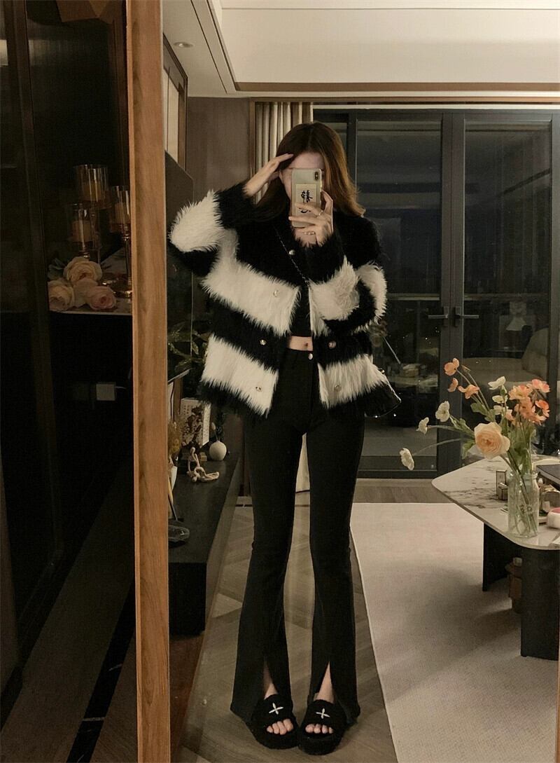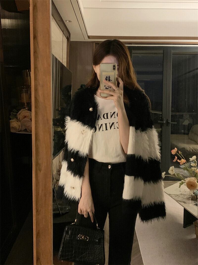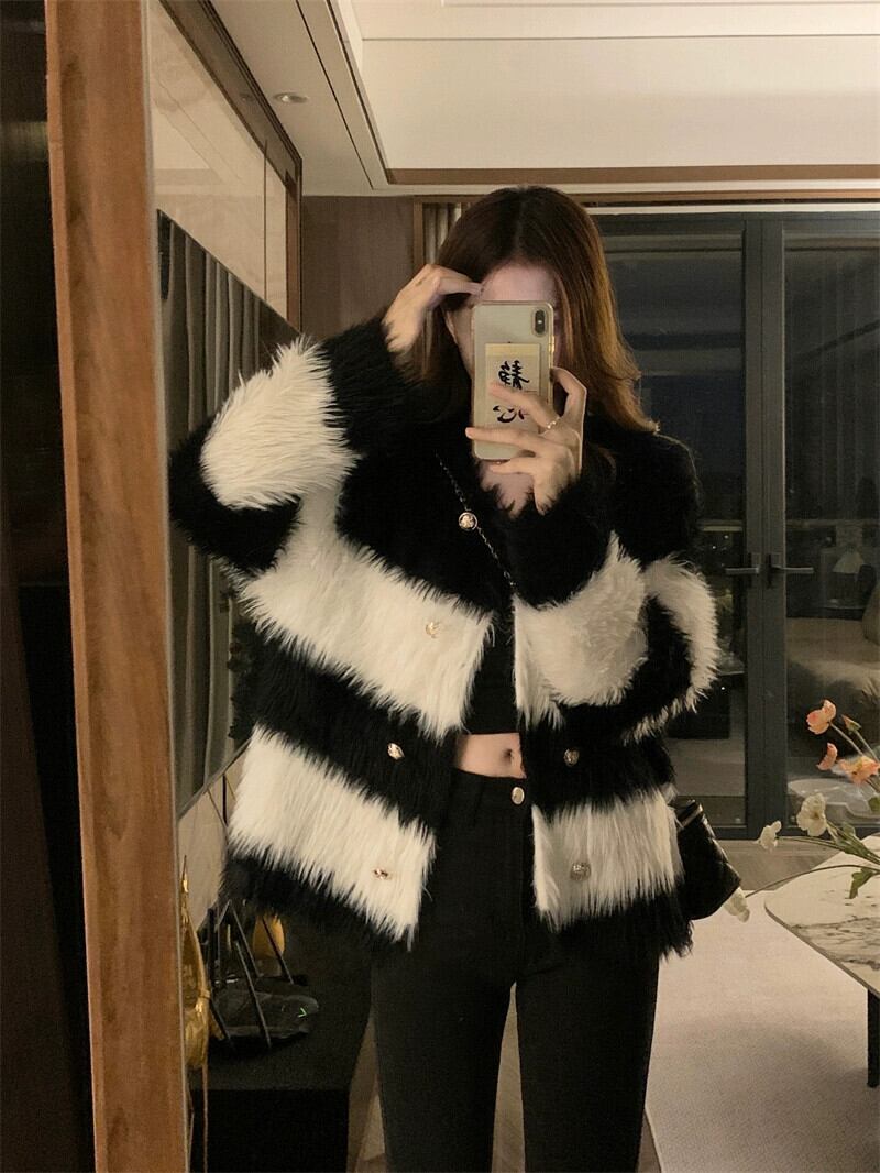 プラスサイズの女性の脂肪 mm ルースレトロデザイントップ冬の新 2023 ファッションカーディガン毛皮のようなウールのコート 大きめサイズ ウィンター 冬物 8884119646250854