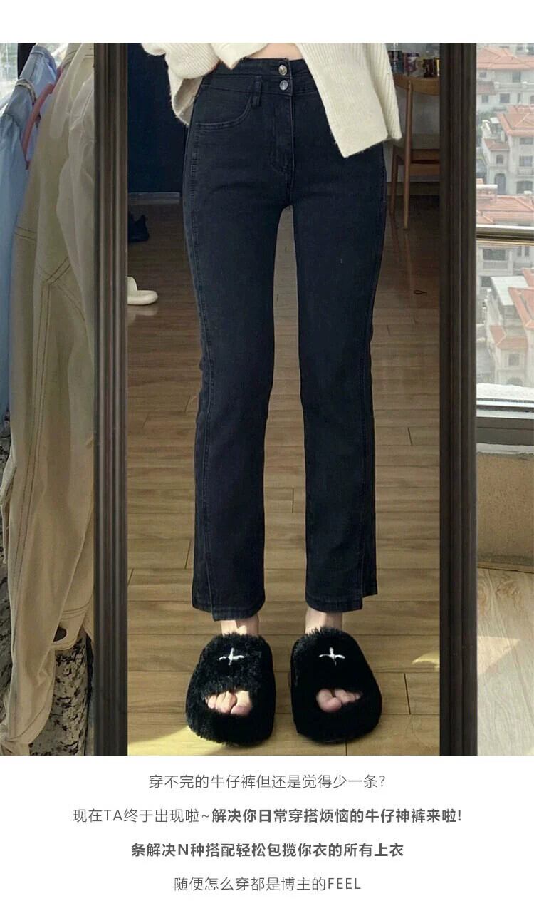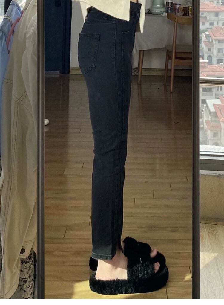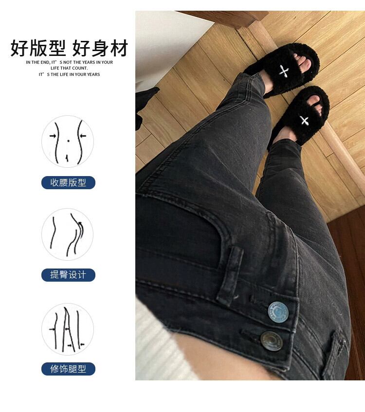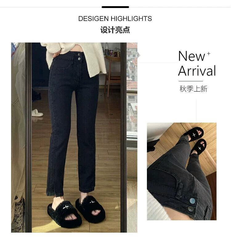 プラスサイズの女性の脂肪ミリメートルハイウエスト弾性ヒップカバー 9 ポイントシガレットパンツ冬の新 2023 スリットストレートジーンズ ハイウェスト エラスティック 伸縮 大きめサイズ ウィンター 冬物 8884197459243643