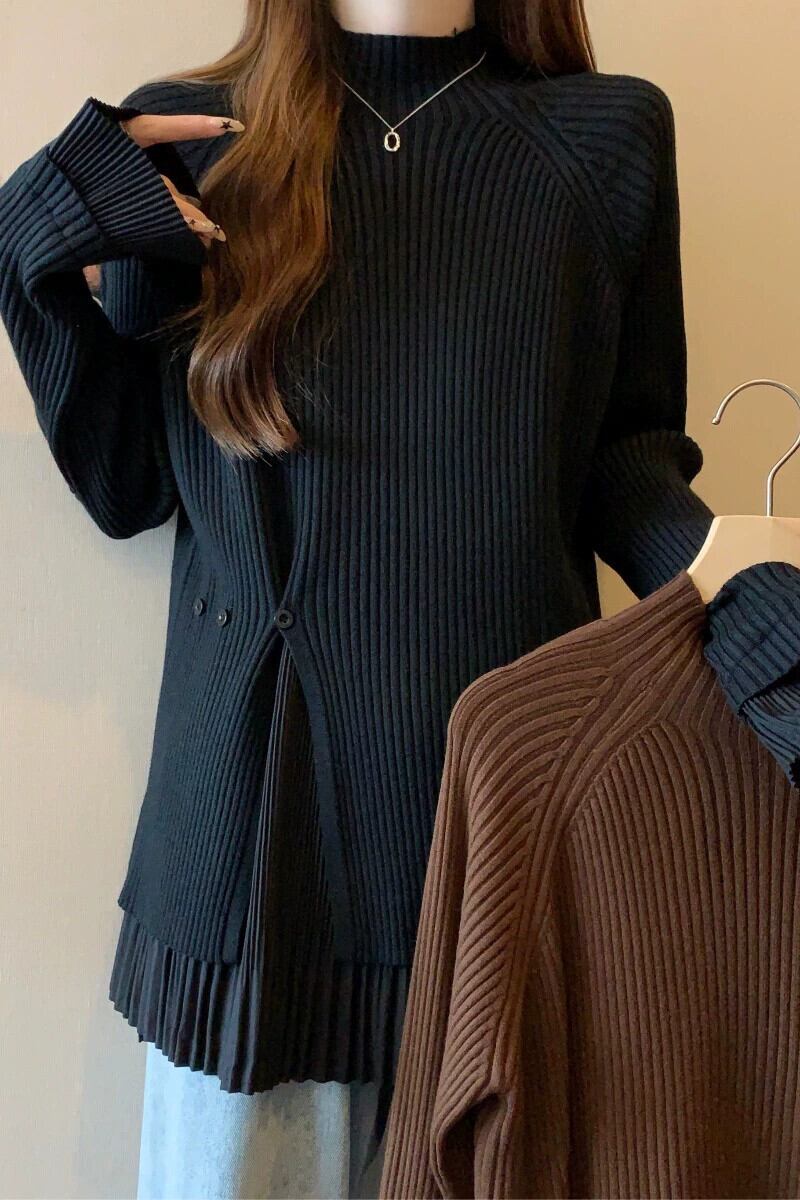 プラスサイズの女性の脂肪 mm 偽ツーピースルーズセーター冬の新 2023 肥厚ハーフハイカラー腹カバートップ 大きめサイズ ウィンター 冬物 8884178229388335