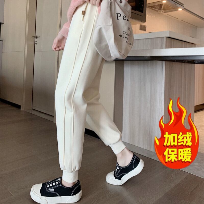 大きいサイズの脂肪mm2023冬の新スタイルプラスベルベット肥厚ワイドレッグスウェットパンツの女性のルーズカジュアルスポーツハーレムロングパンツ 大きめサイズ ウィンター 冬物 888414373544347