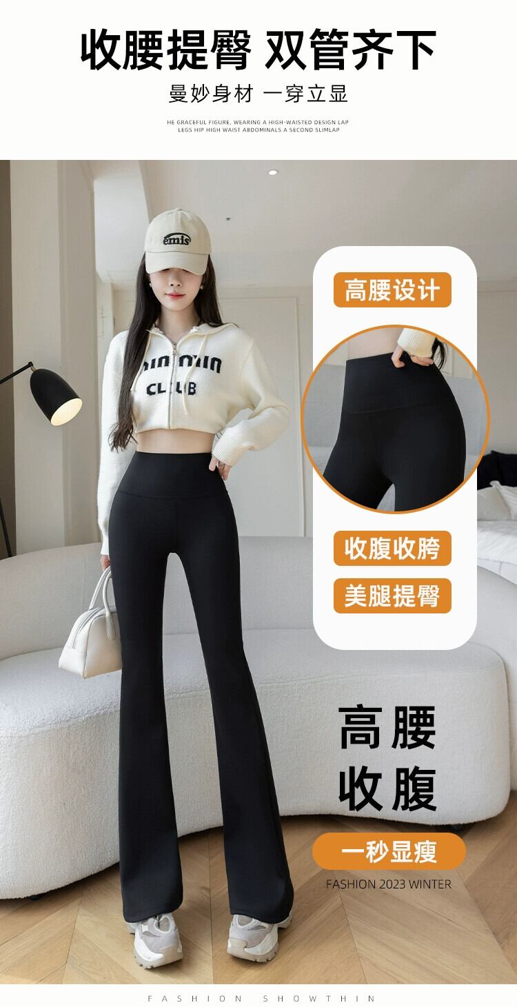 プラスサイズのファットウェアマイクロフレアベルベット肥厚ヒップレギンスレディースヨガサメパンツスポーツベリーコントロールロングパンツ レッド 大きめサイズ 8884199489273277