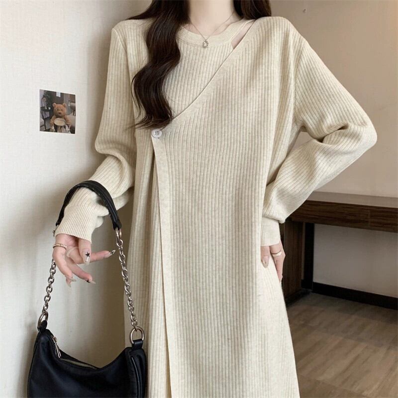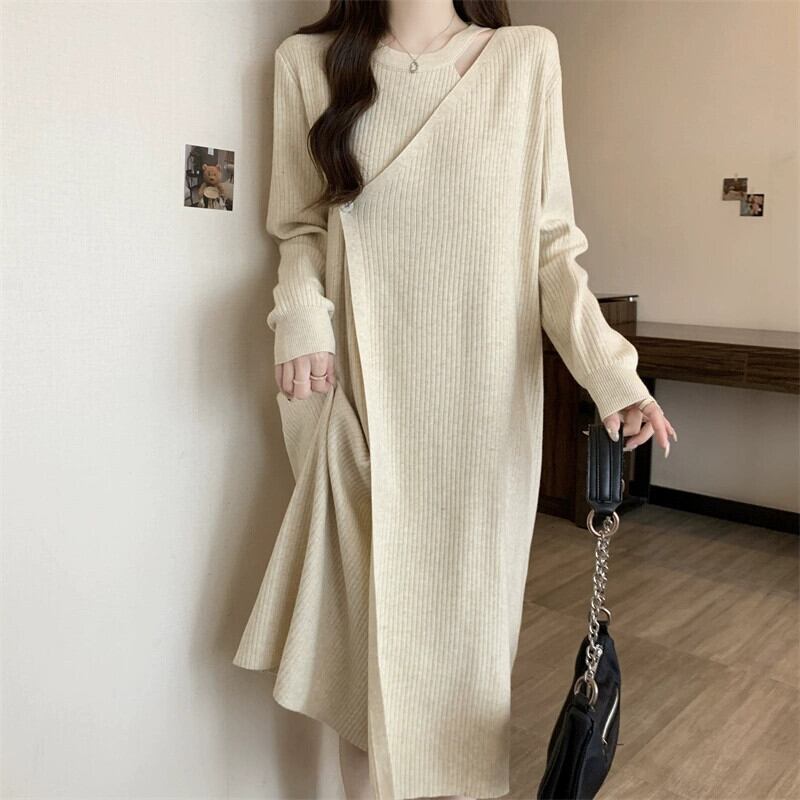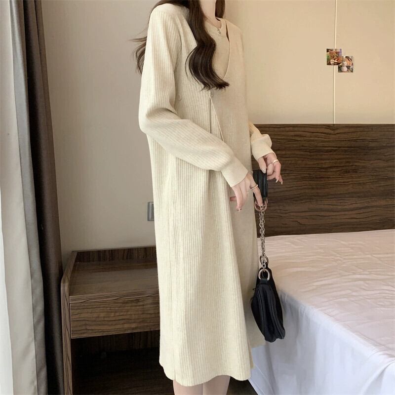 プラスサイズの婦人服脂肪 mm 冬の新スタイル 2023 フレンチファッションハイエンドニットドレス気質ミッドレングススカートトレンド 大きめサイズ ウィンター 冬物 8884184961281089