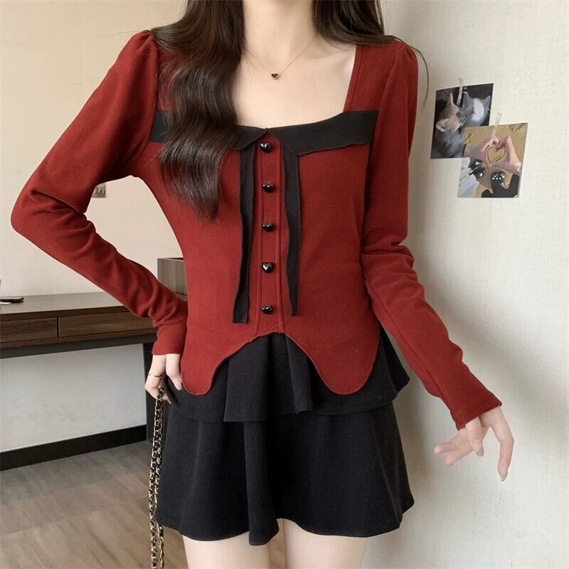 色:アプリコットトップ,ブラックトップ,ブルゴーニュのトップ,アプリコットケーキスカート,ブラックケーキスカート