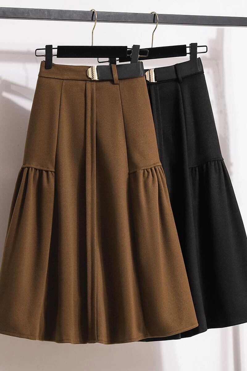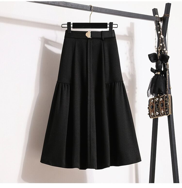プリーツスカートミドル丈スカート女性の冬の新しい大きいサイズ脂肪ミリメートル洋ナシ型痩身 A ラインアンブレラスカートウールスカートトレンディ 大きめサイズ ウィンター 冬物 Aライン 8884137688883991