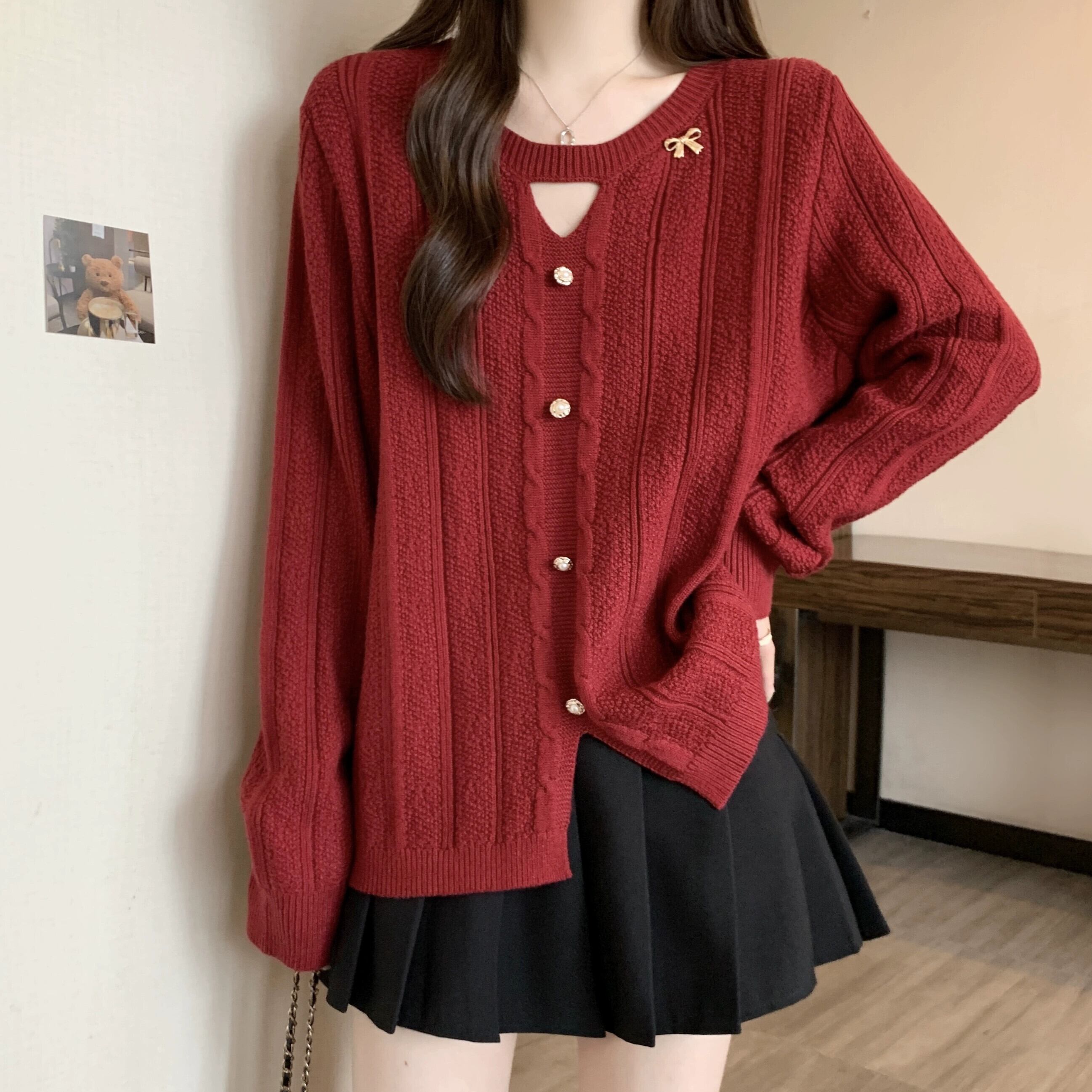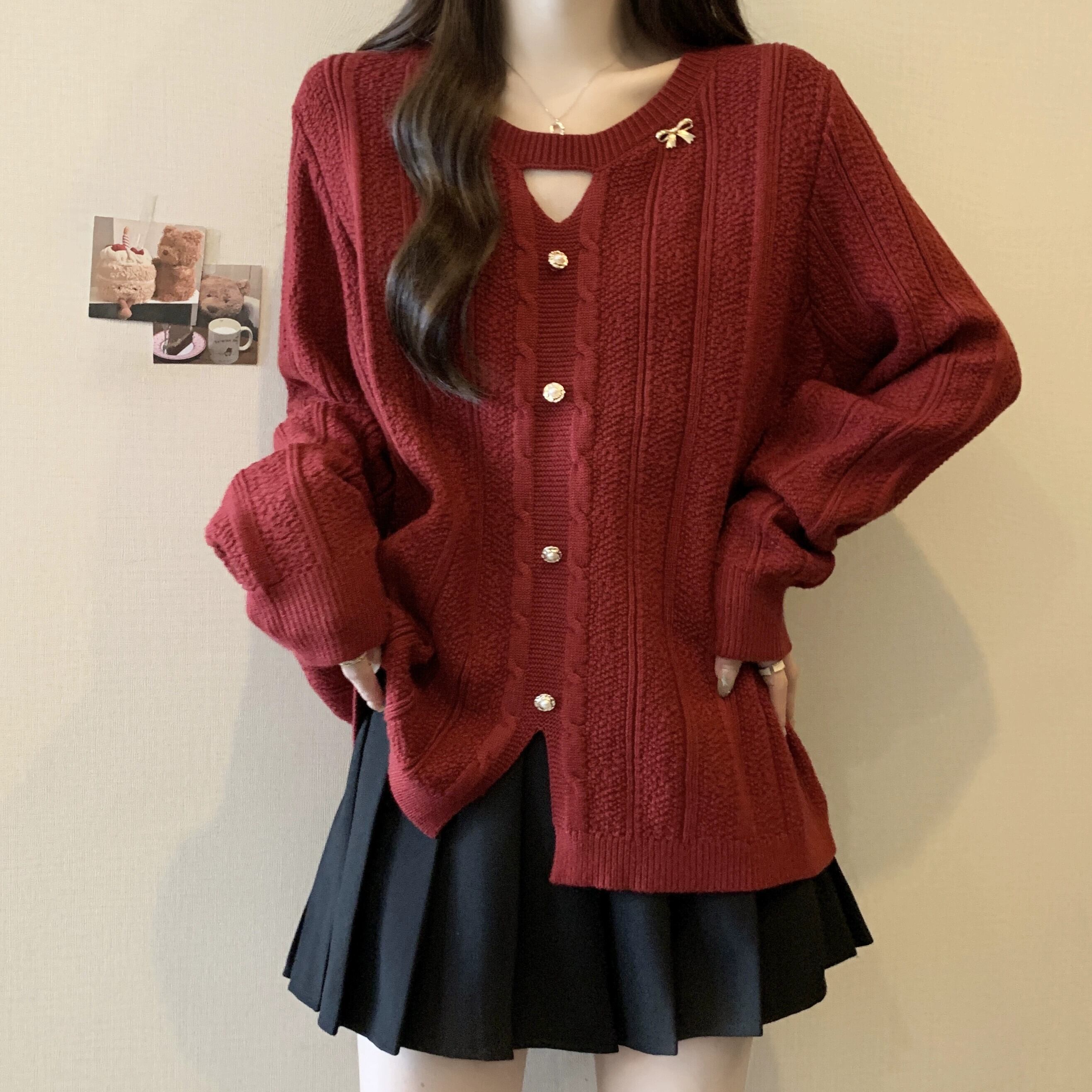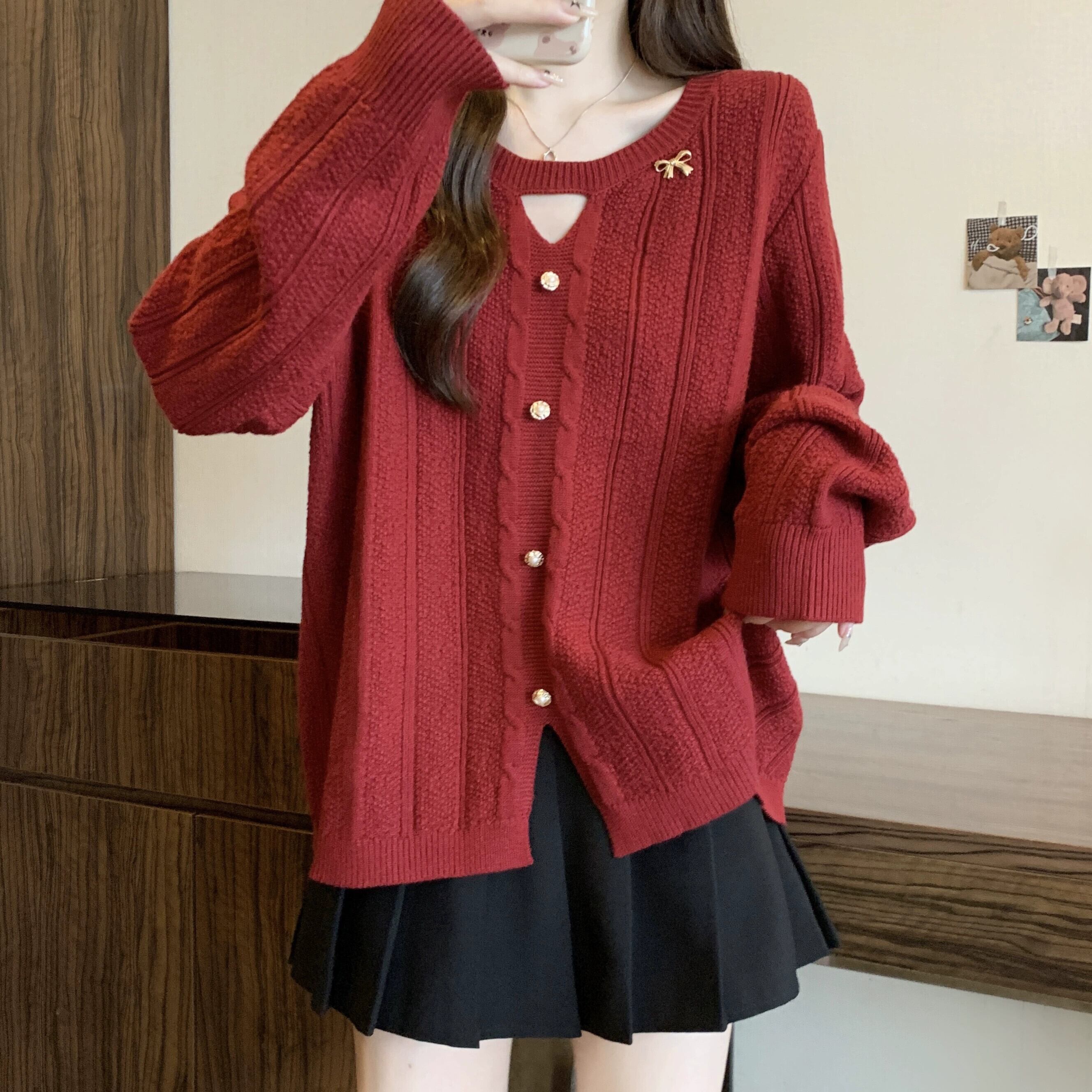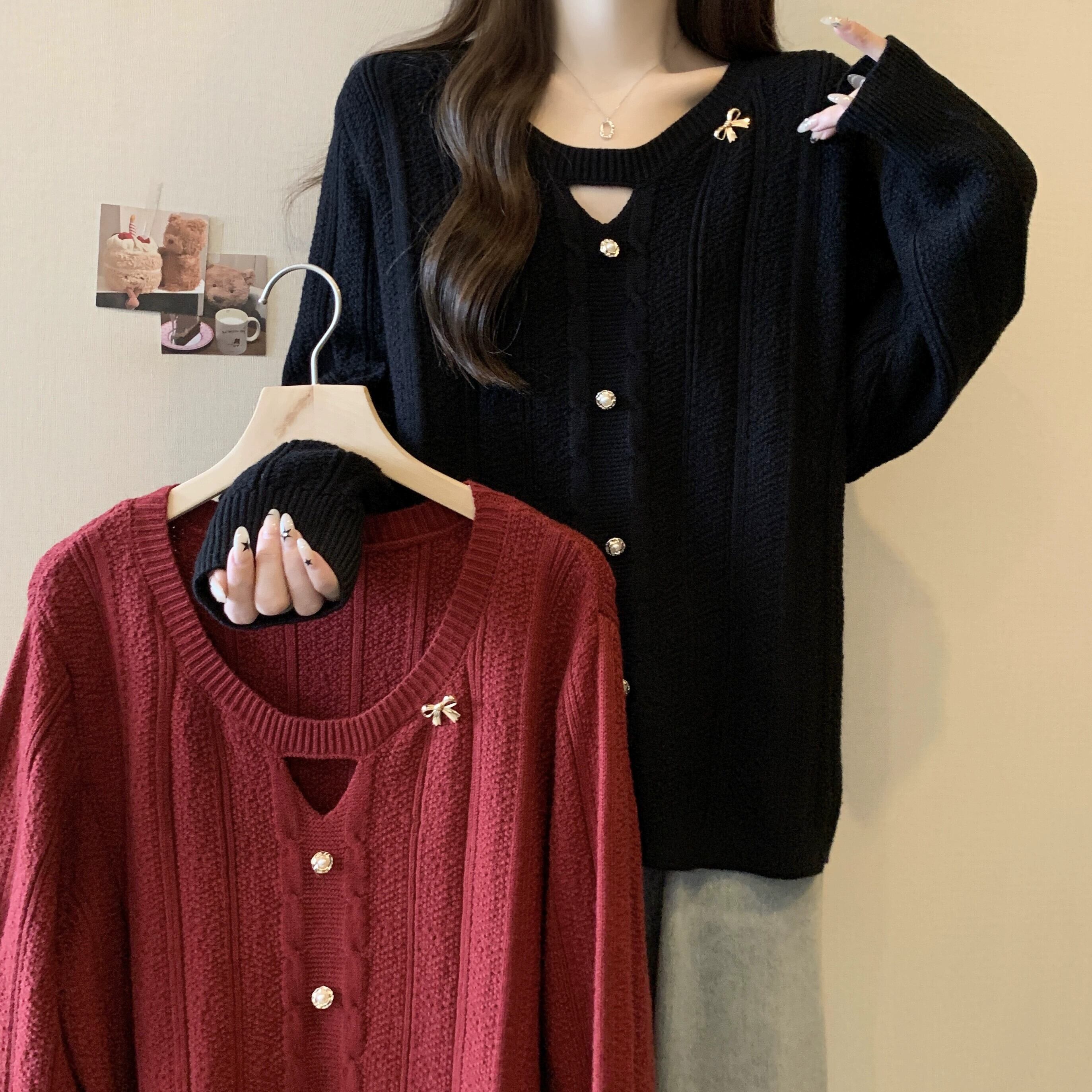 大きいサイズの女性のルーズセーター女性の秋と冬の怠惰なスタイルのデザイン気質ラウンドネック中空脂肪mmルーズカジュアルトレンド 大きめサイズ オータム 秋物 ウィンター 冬物 Oネック 8884157719101107