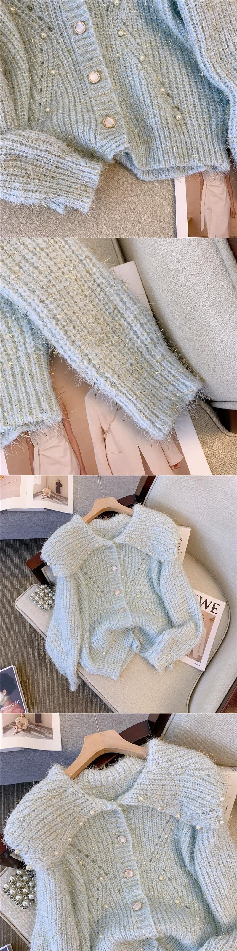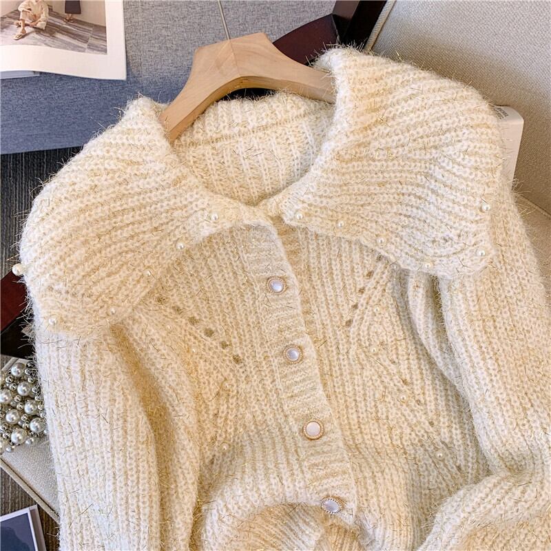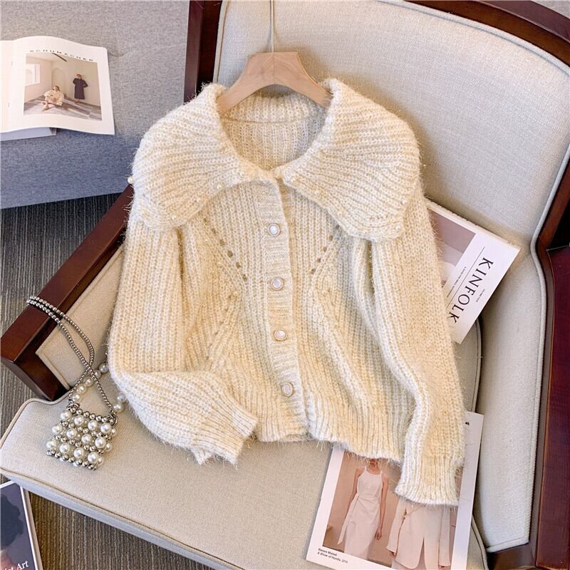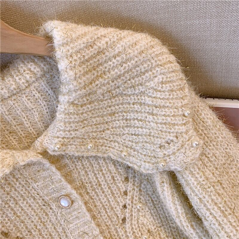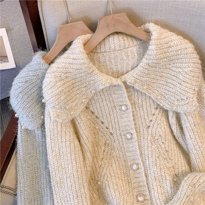 プラスサイズの女性の脂肪 mm 人形の襟長袖カーディガンセーター冬の新 2023 ニッチフレンチビーズアウタートップ ロング 大きめサイズ ウィンター 冬物 8884196285409364