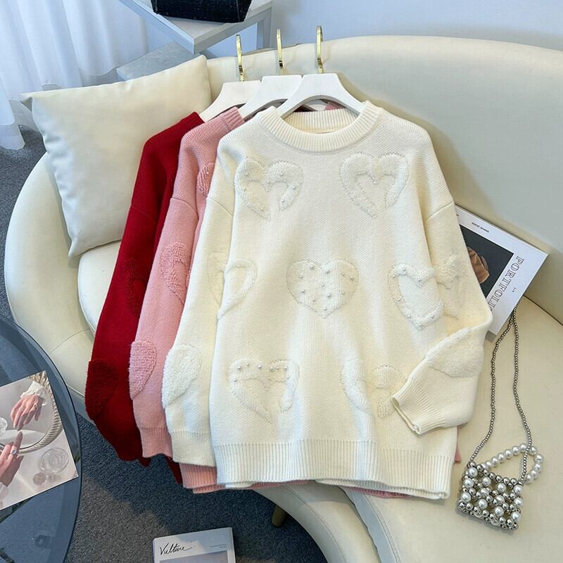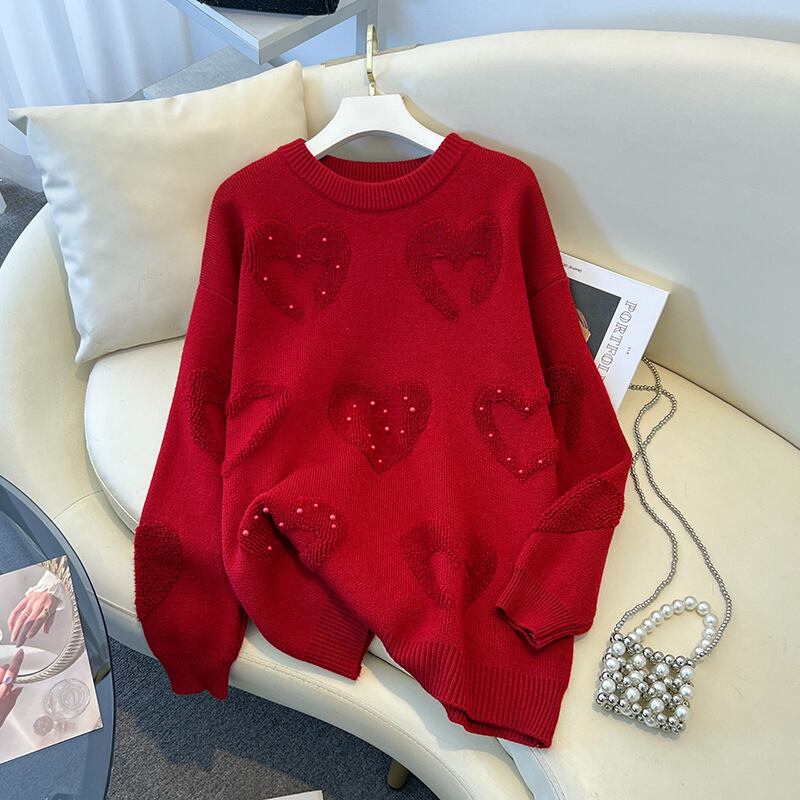 プラスサイズの女性のセーターの女性の秋冬 2023 新しいミッドレングスの怠惰なスタイルのセーター赤ルーズでスリムシック レッド 大きめサイズ オータム 秋物 ウィンター 冬物 8884125731425981