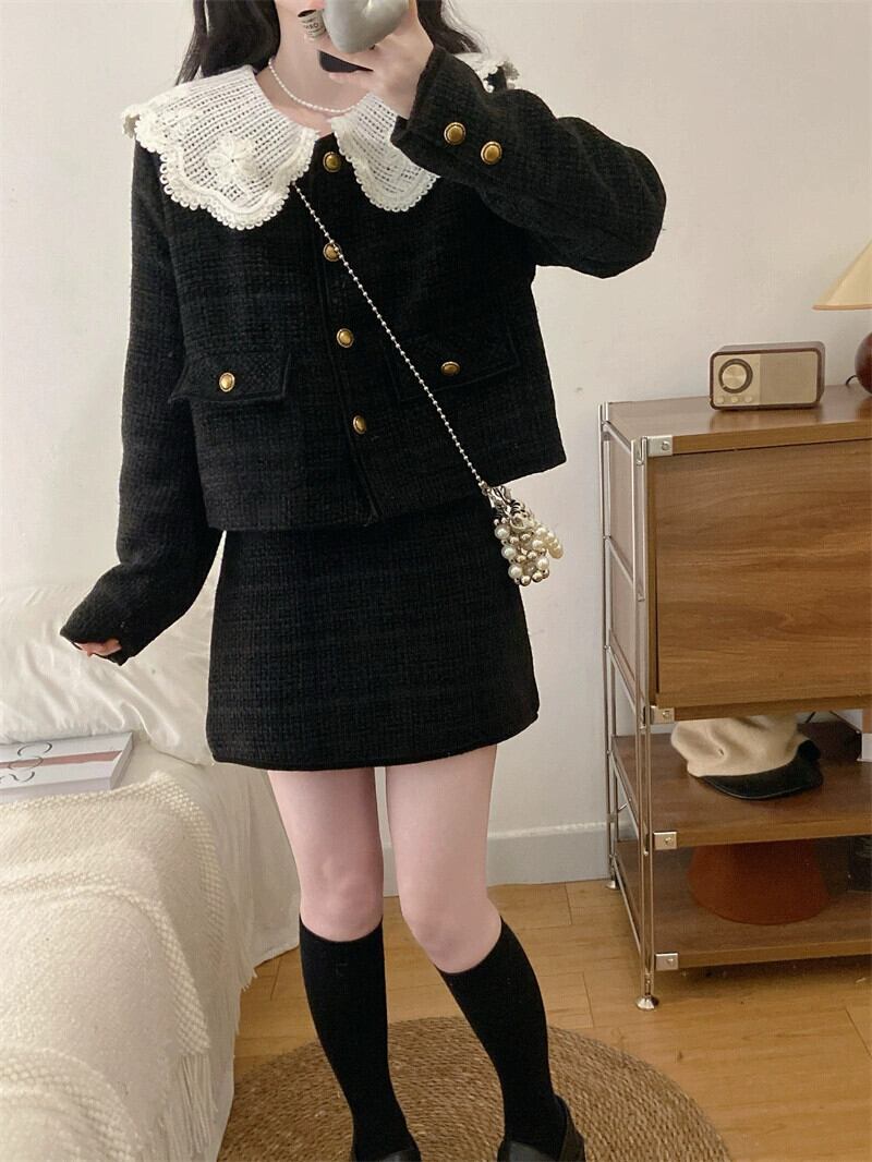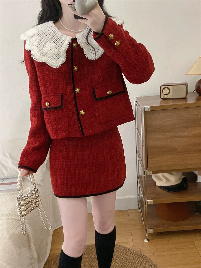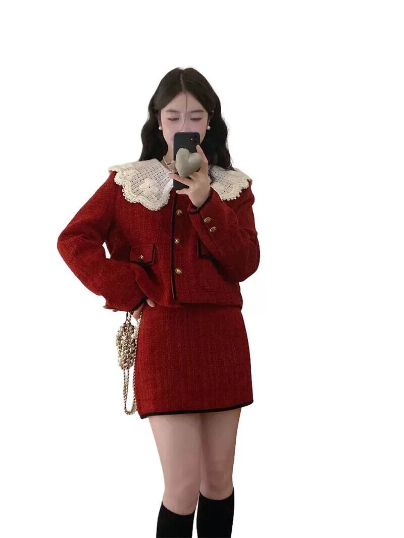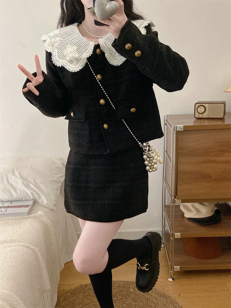 プラスサイズの女性の脂肪 mm ハイエンドファッション年齢低減スーツ冬の新 2023 デザイントップとスカート 2 点セット 大きめサイズ ウィンター 冬物 888419225886236