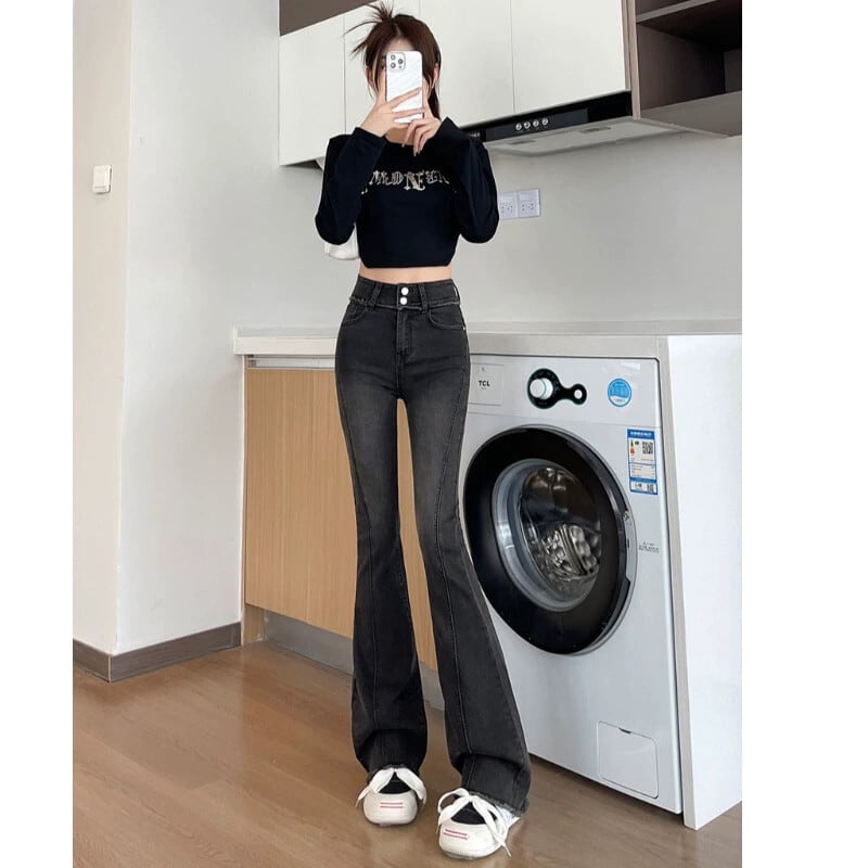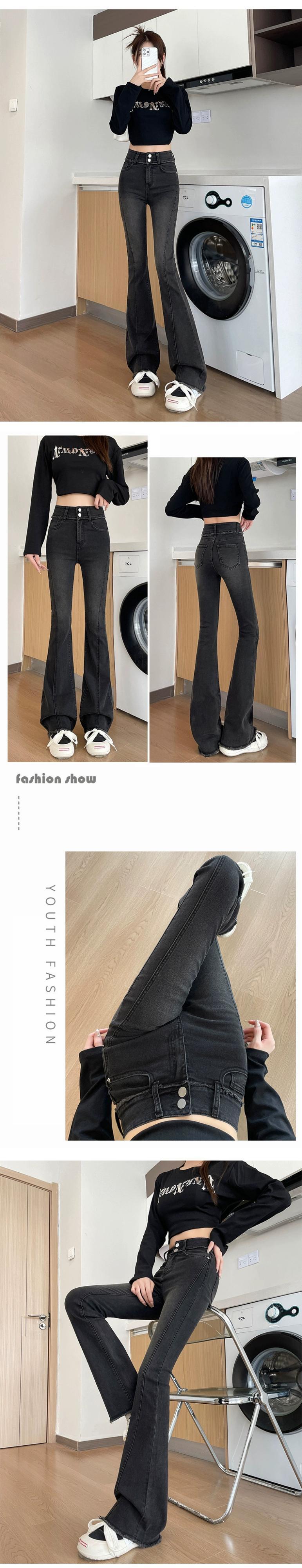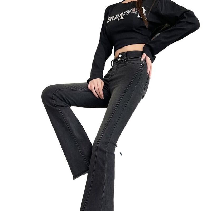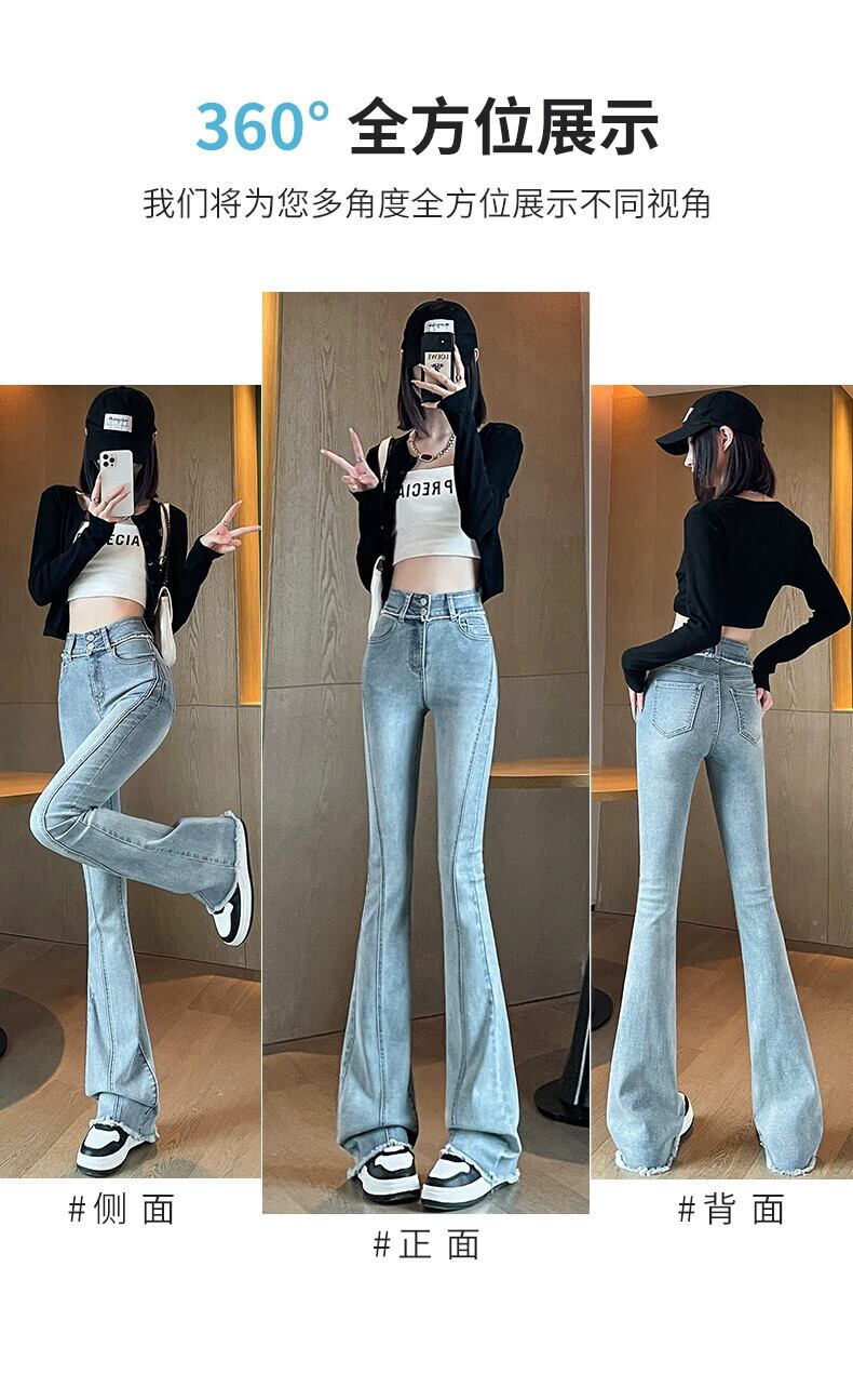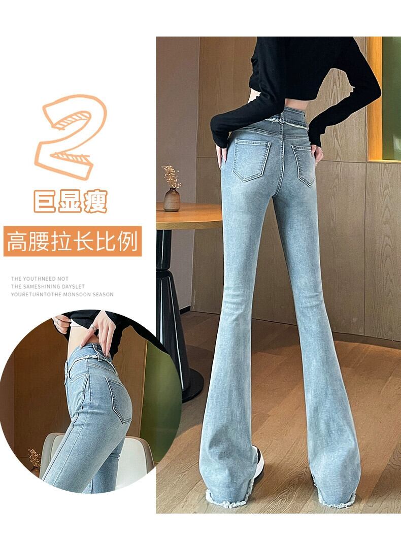 -ウエストわずかにブーツジーンズ女性春ベルベット肥厚 2023 新しい弾性スリム痩身馬蹄フレアパンツ レッド エラスティック 伸縮 スプリング 春物 8884114827411030