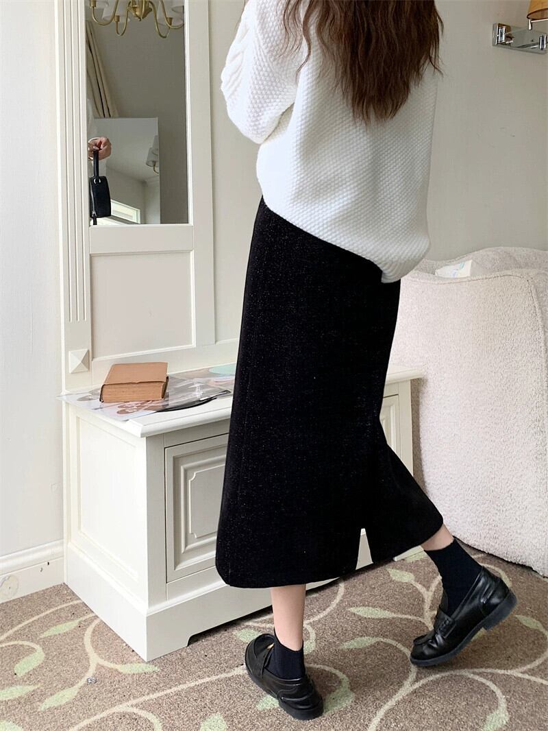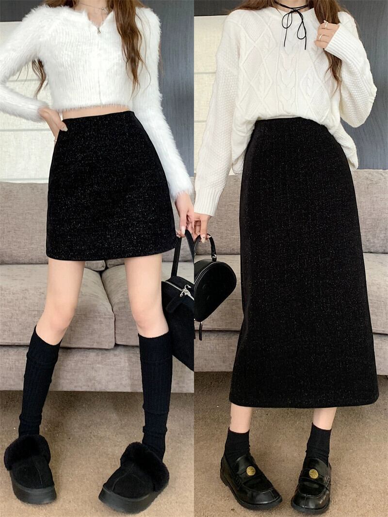 大きいサイズのニッチウールハイウエストスカートの女性春の脂肪、股を覆うお尻を覆うスカート、厚く暖かいドレープショートスカート 大きめサイズ スプリング 春物 8884167013926264