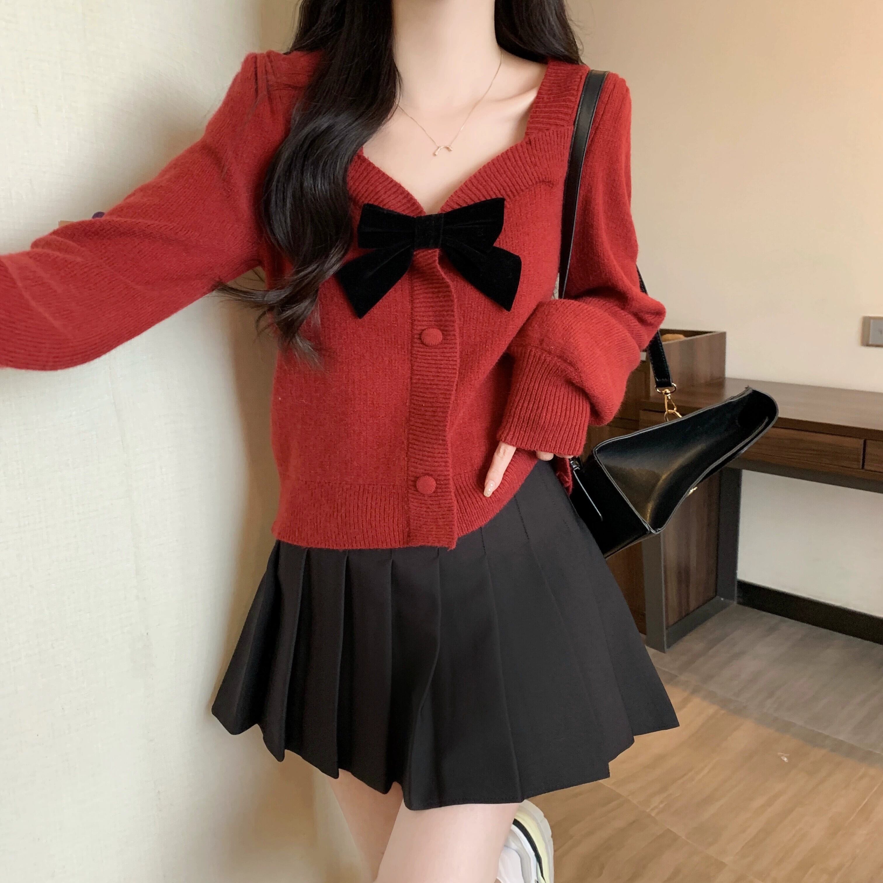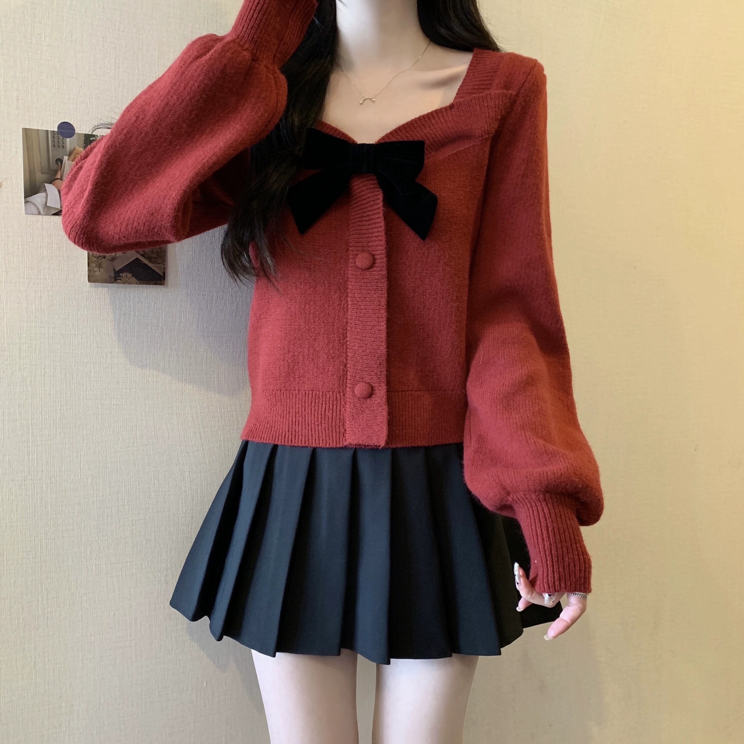 プラスサイズの女性の脂肪 mm 冬の新 2023 冬のセーターのデザインニッチルーズリボンニットカーディガントップ 大きめサイズ ウィンター 冬物 8884195054803158