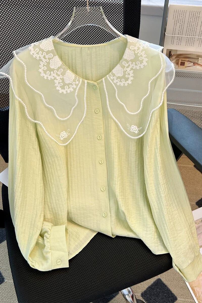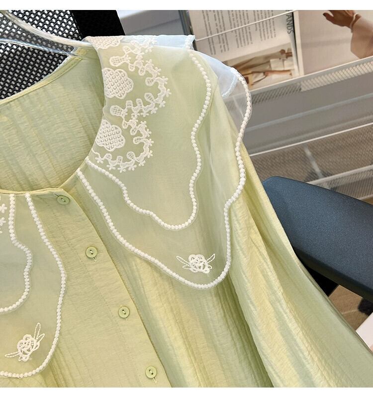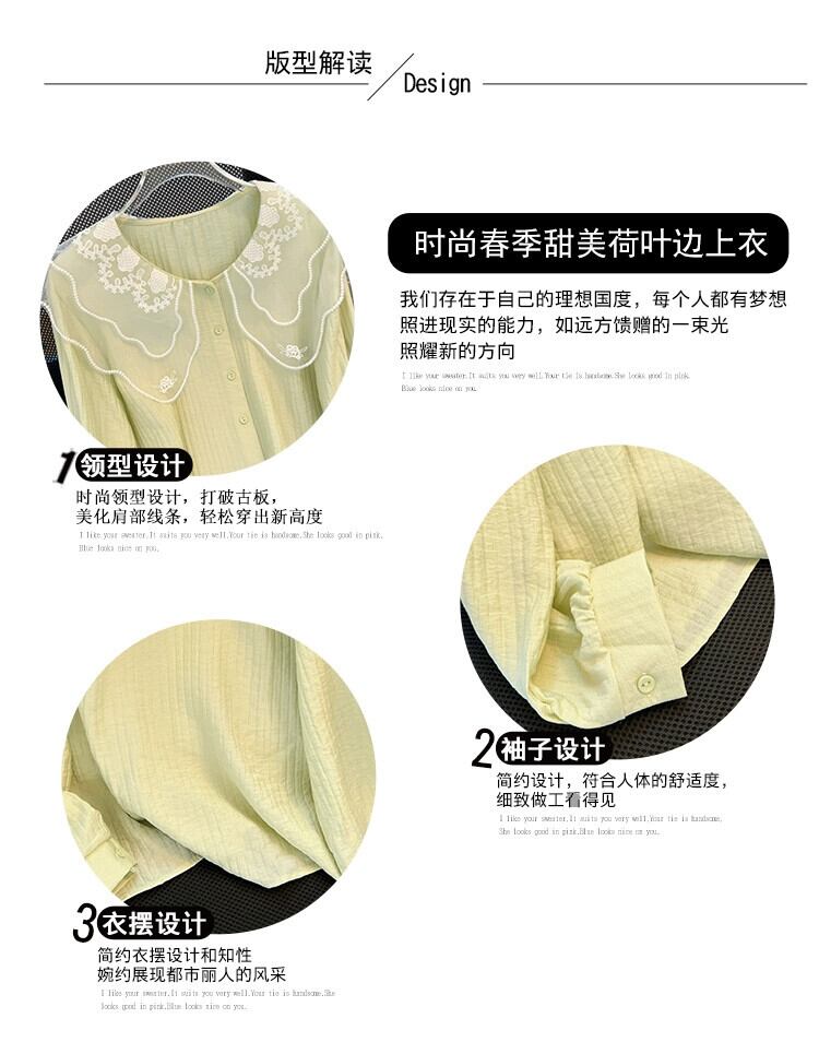 プラスサイズの女性の 2024 ファットシスター春の新しいスタイルのドールカラーシャツ甘いルーズでスタイリッシュな長袖トップシャツ ロング 大きめサイズ 大人ガーリー スウィート キュート カジュアル スプリング 春物 8884193248464449