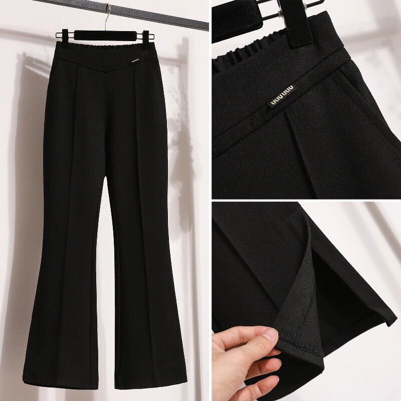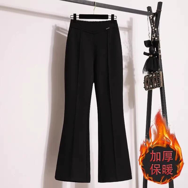 プラスサイズの春の新スタイルベルベット肥厚カジュアルパンツ女性ファット MM ストレートハイウエストスリムドレープわずかにフレアパンツトレンディ ハイウェスト レッド 大きめサイズ スプリング 春物 8884129193529837