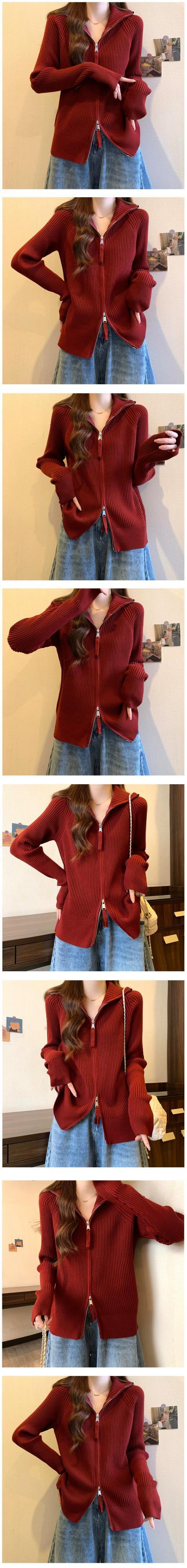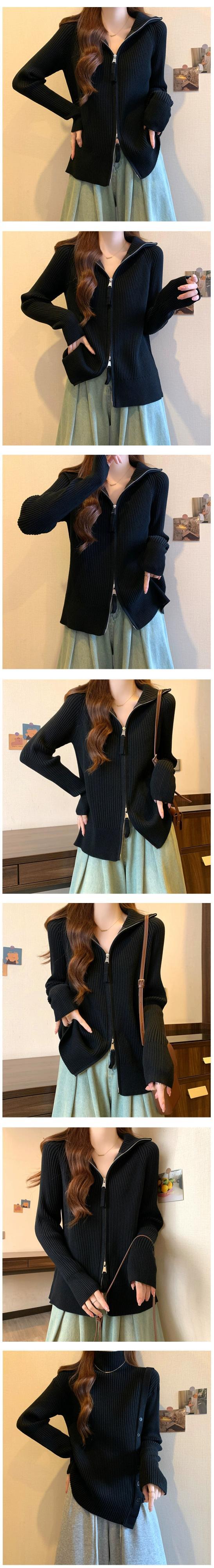 大きいサイズの女性のセーター女性の 2023 春の新無地両端ジッパー痩身怠惰なカーディガンフード付きセーター 大きめサイズ スプリング 春物 ソリッドカラー 8884111688158690