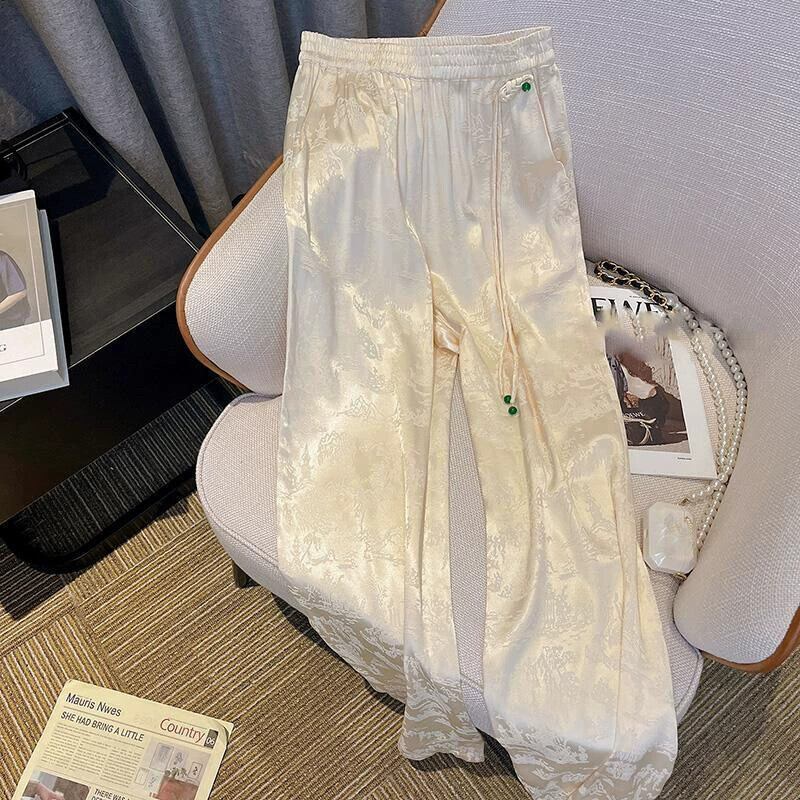 プラスサイズ脂肪ミリメートル 2024 春ナローバージョンワイドレッグパンツ女性ハイウエストドレープ中国風ジャカードルーズストレートパンツトレンド ハイウェスト 大きめサイズ スプリング 春物 ワイドパンツ 8884120908856507