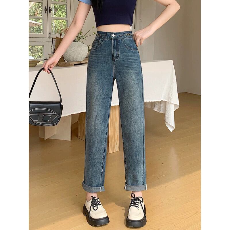 プラスサイズの婦人服ファットミリメートル春の新スタイル 2024 多用途痩身ハイウエストジーンズニッチファッション気質シガレットパンツ ハイウェスト 大きめサイズ スプリング 春物 8884175434247071