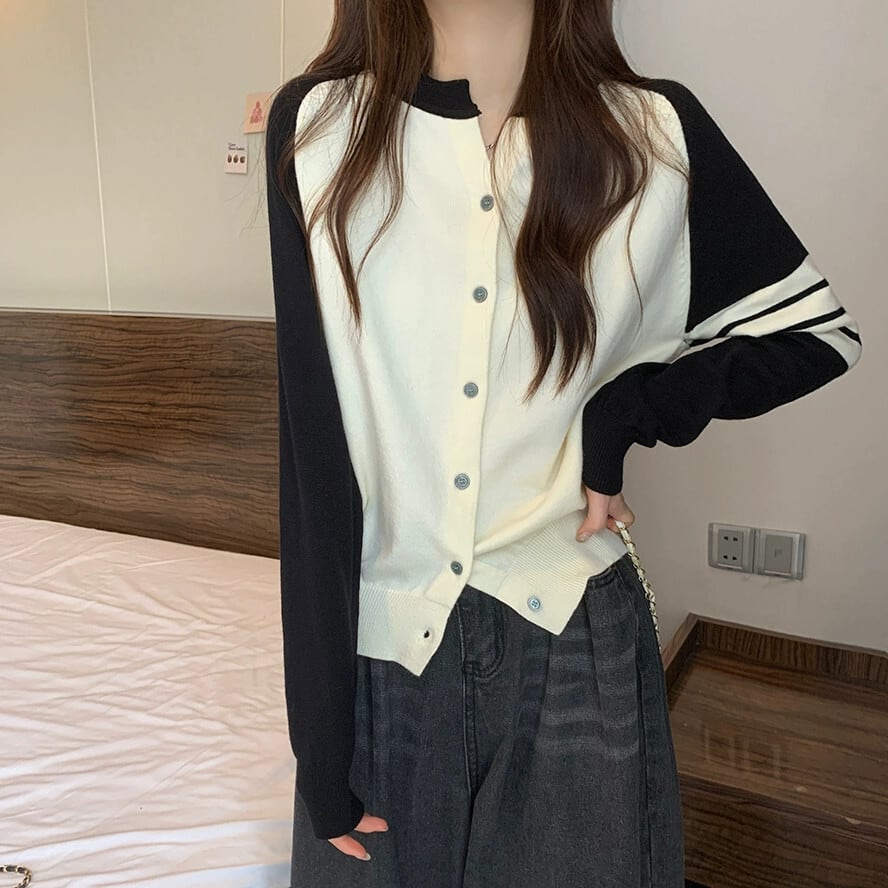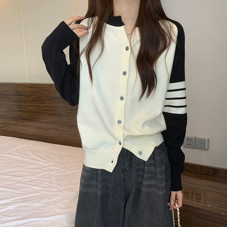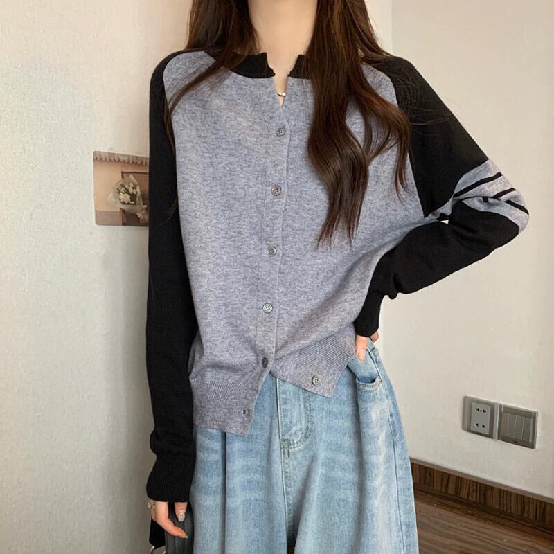 大きいサイズのスタイルカラーブロックストライプカジュアルオールマッチカーディガンセーター女性 2024 春スリム長袖セータートップ ロング 大きめサイズ スプリング 春物 888413129094627