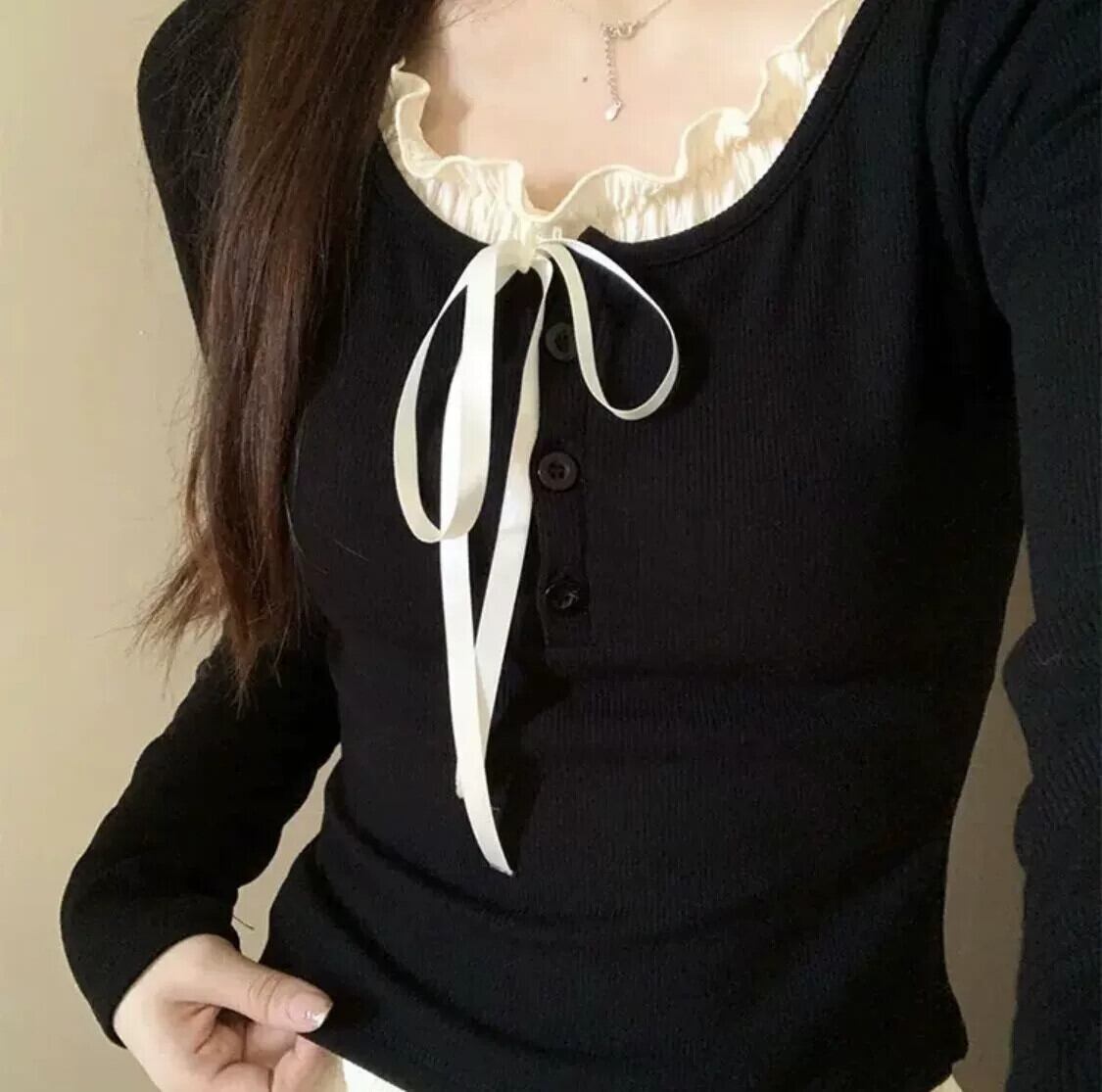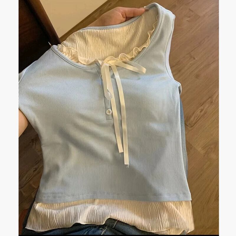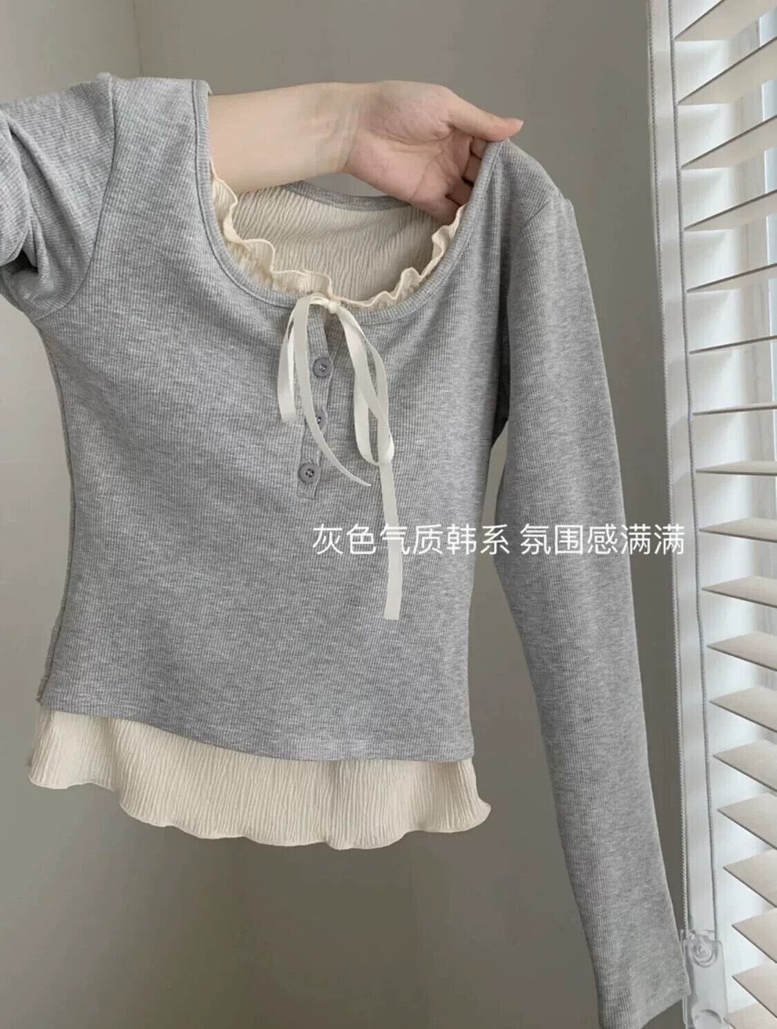 プラスサイズの女性の脂肪 mm 偽ツーピース 2024 初春の新しいスタイルの菌類ラウンドネックスリム、シックで美しいトップ 大きめサイズ スプリング 春物 Oネック 8884128334181586