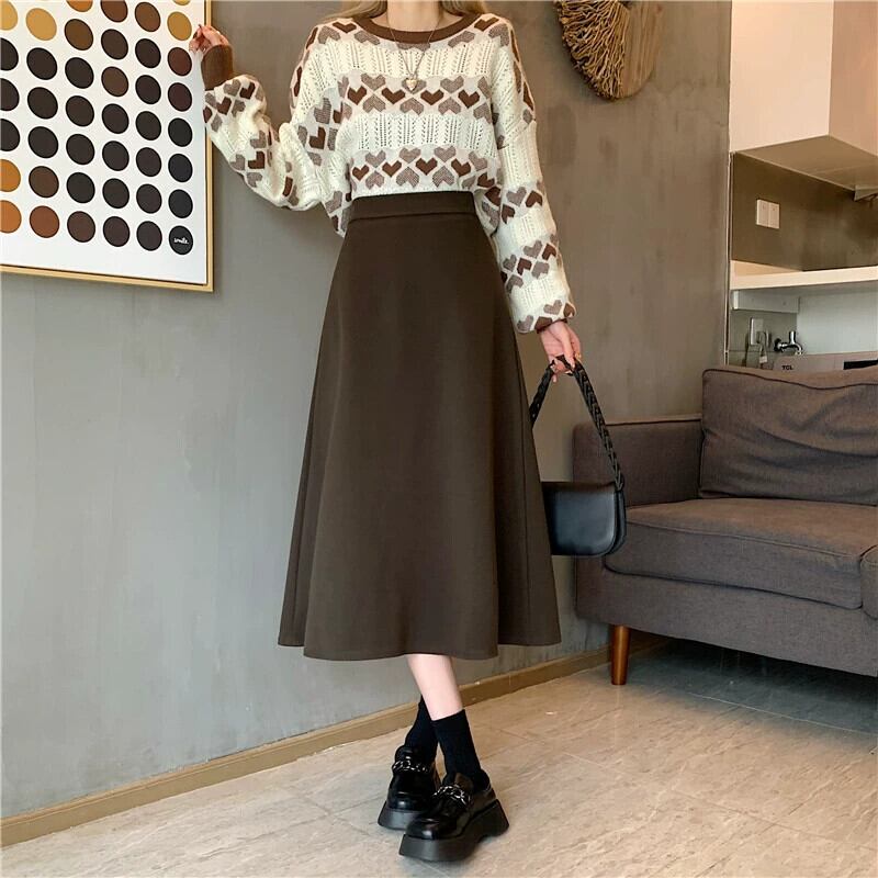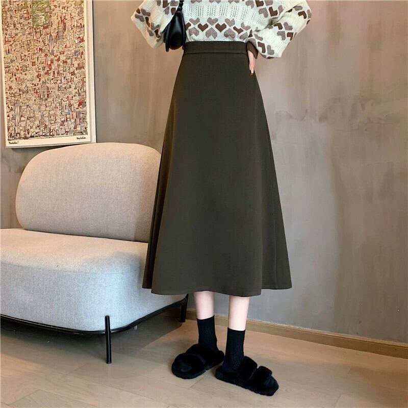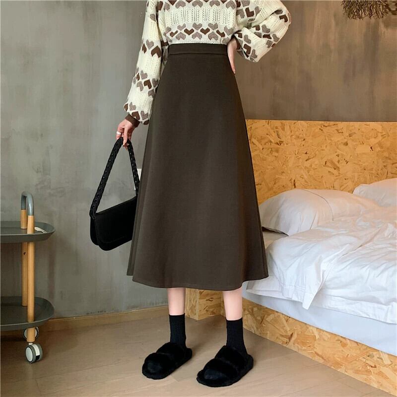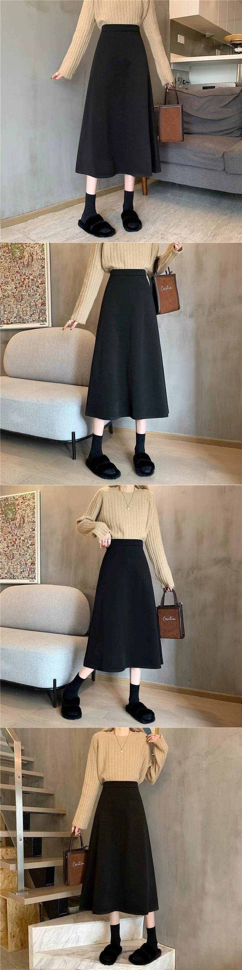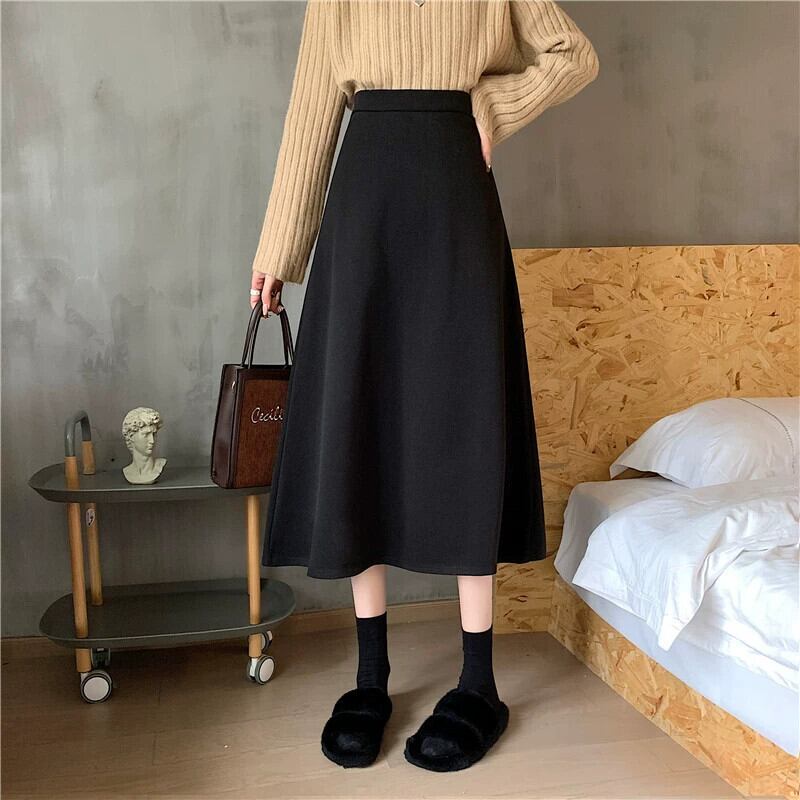 大きいサイズの黒のハイウエストスリムスカート洋梨型フィギュアAラインスカート女性春の新作ファットMMウールアンブレラスカート ブラック 大きめサイズ スプリング 春物 8884124120303110