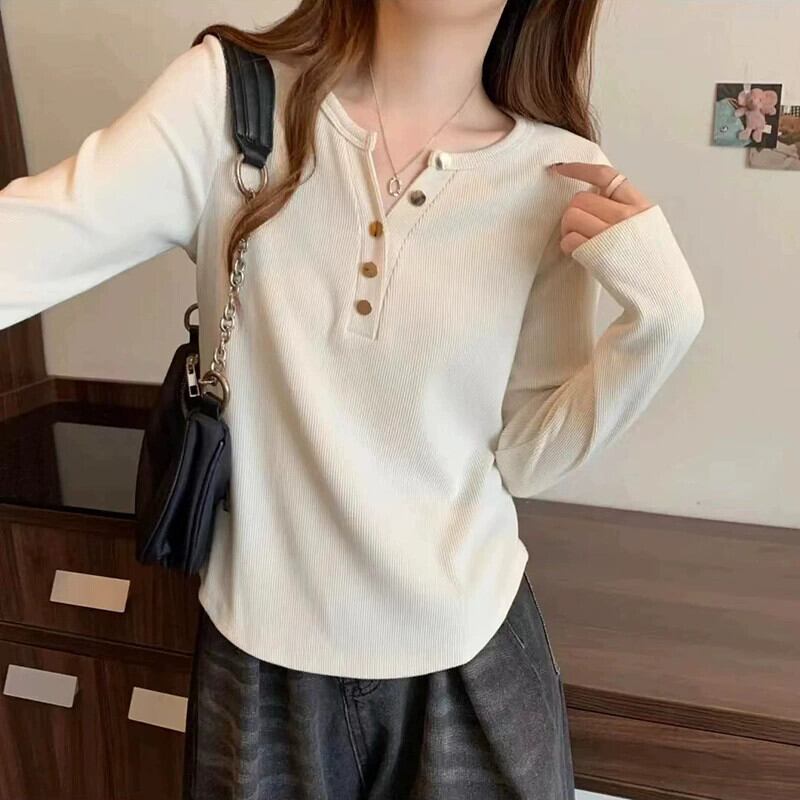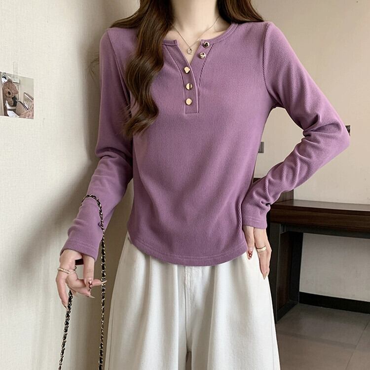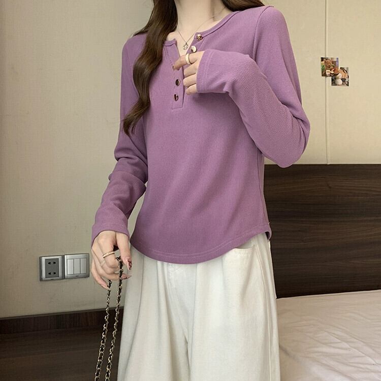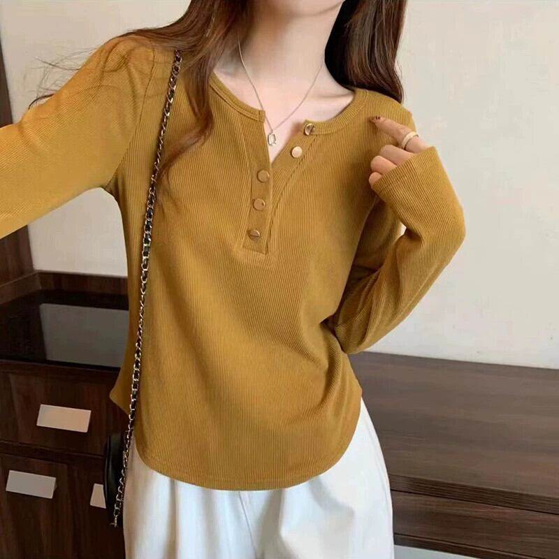 ハーフオープンカラーデザイン、不規則なボトムシャツレディース、ファッショナブルで多用途なTシャツ、大きいサイズのレディース春スリムトップトレンディ 大きめサイズ スプリング 春物 8884159633861700