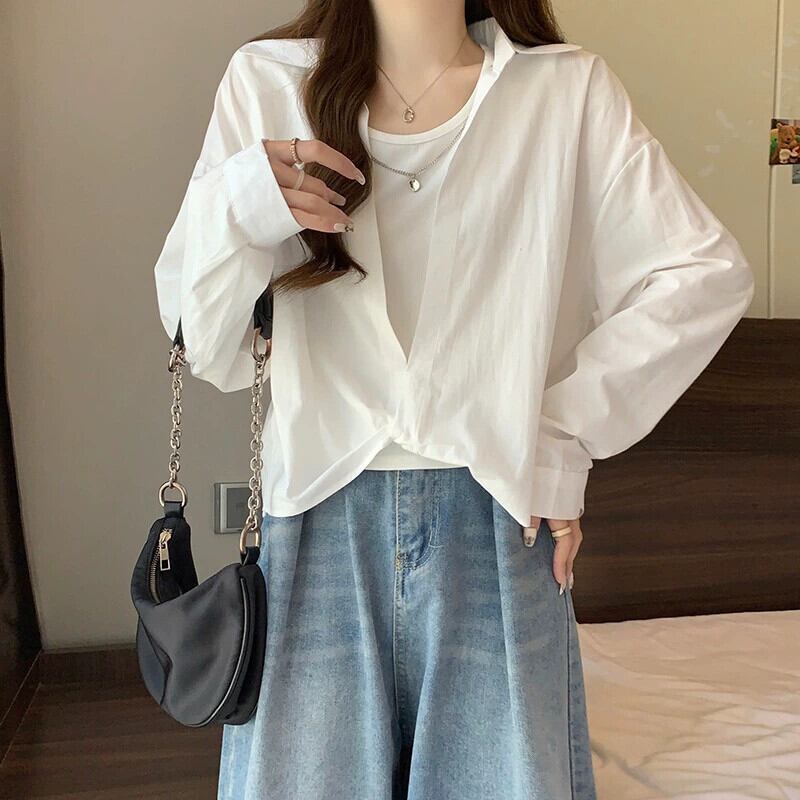 プラスサイズの婦人服ファット mm 春の新スタイル 2024 香港スタイル 2 点セット多用途ファッションシャツルーズスリムトップトレンディ 大きめサイズ スプリング 春物 8884149109782634