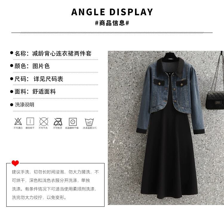 プラスサイズの婦人服ファット mm 春の新 2024 レトロスリム長袖デニムジャケットとドレス 2 点セット ロング 大きめサイズ スプリング 春物 8884194727475660