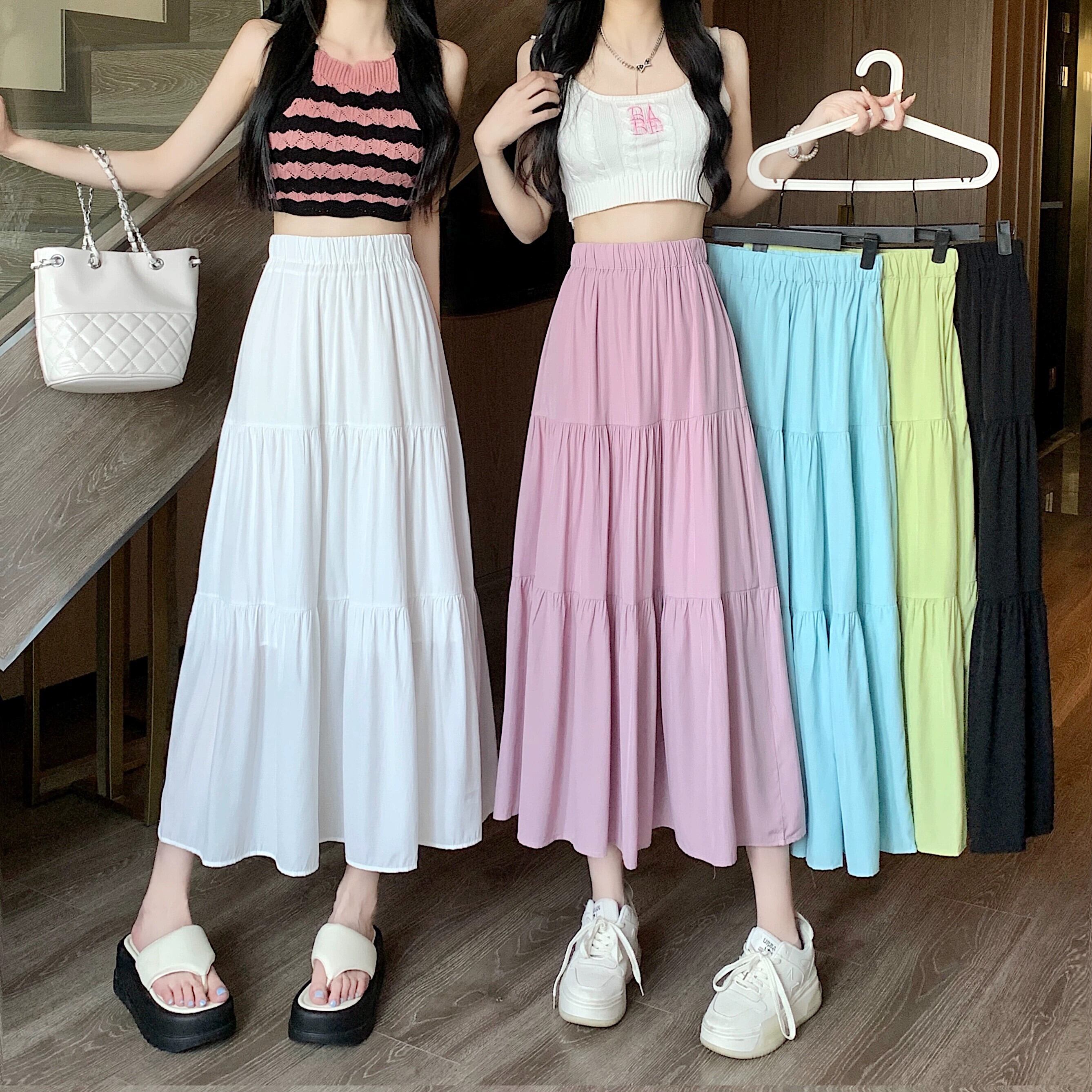 黒ハイウエストプリーツスカートレディース春ヒップカバーニッチハイエンドニッチ痩身スカートAラインロングスカート ブラック スプリング 春物 8884139943366739