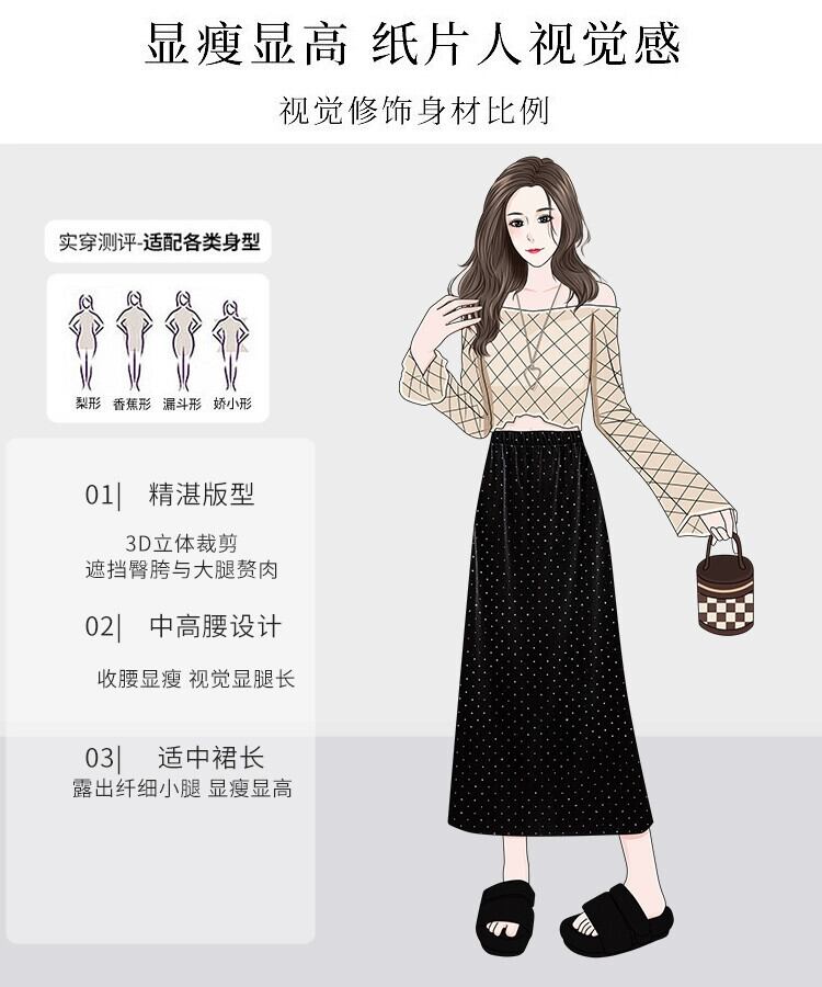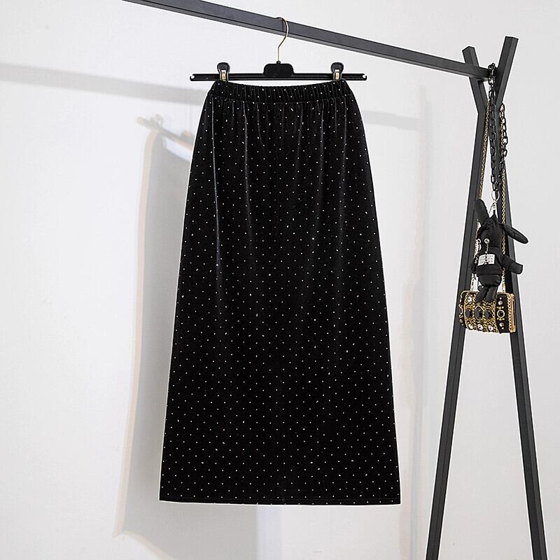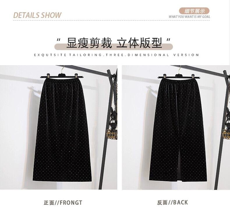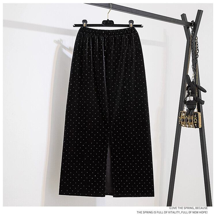 プラスサイズの婦人服ファットmm春の新スタイル2024多用途ダイヤモンドベルベットAラインスリットストレートスカート 大きめサイズ スプリング 春物 8884156970473677