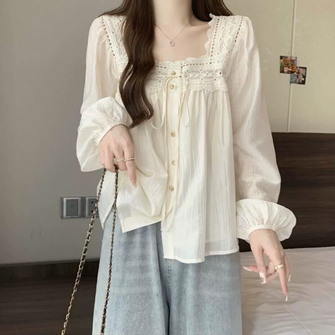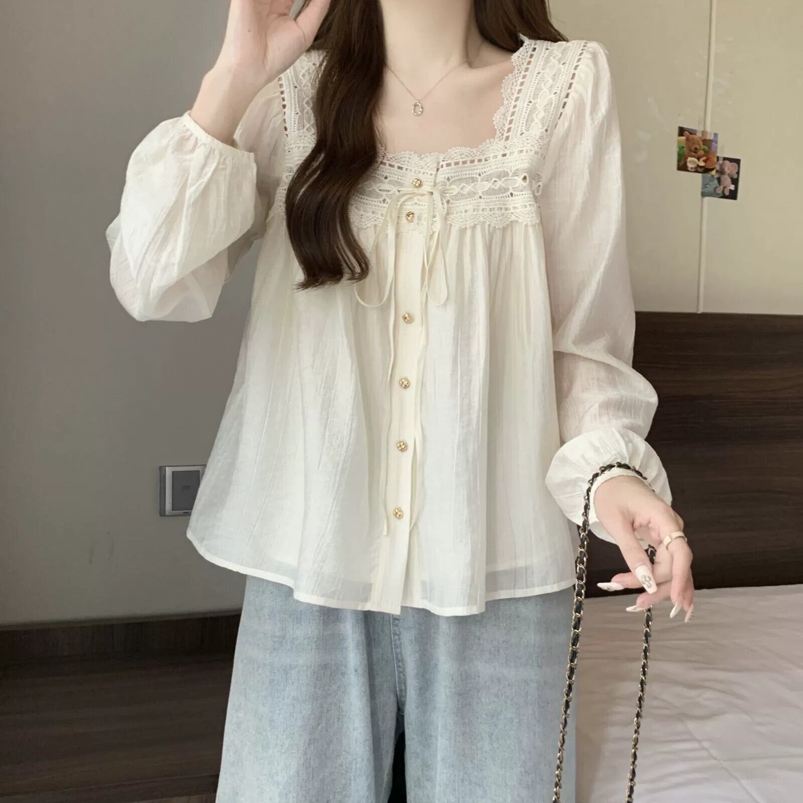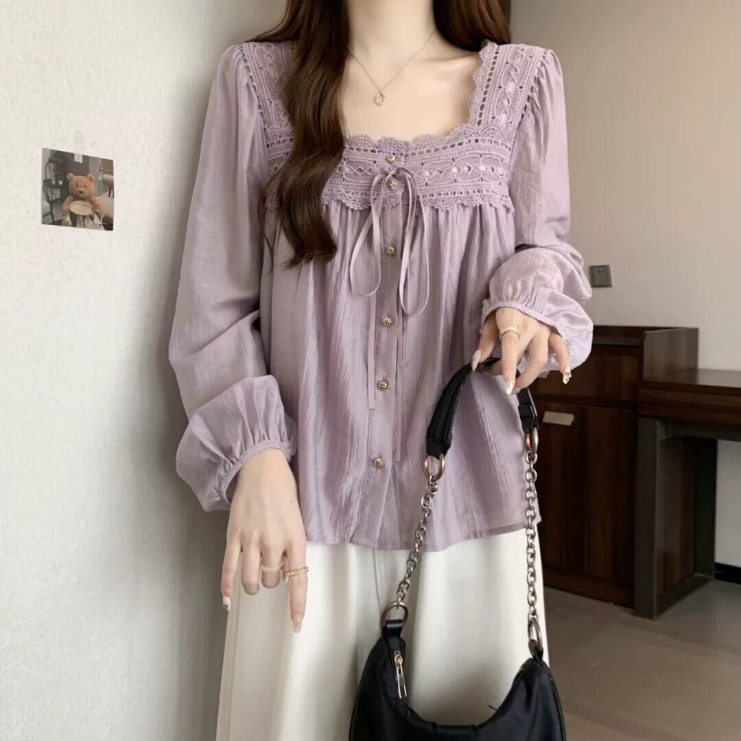 プラスサイズの婦人服ファット mm 春の新 2024 フレンチスイートレースルーズシャツファッショナブルな気質トップ 大きめサイズ 大人ガーリー スウィート キュート カジュアル スプリング 春物 8884131871678486
