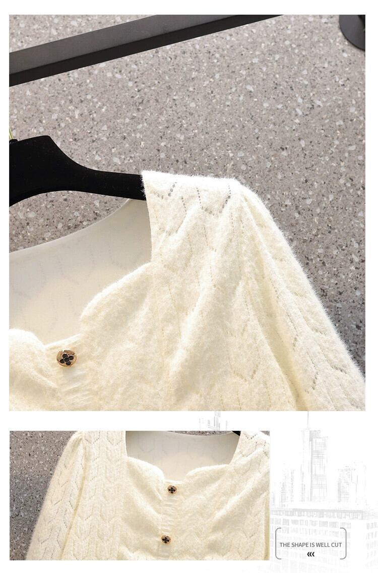 プラスサイズの女性の脂肪ミリメートル春の新スタイル 2024 気質ルーズニットセーター痩身年齢削減レース底シャツトップ 大きめサイズ スプリング 春物 8884148589076087