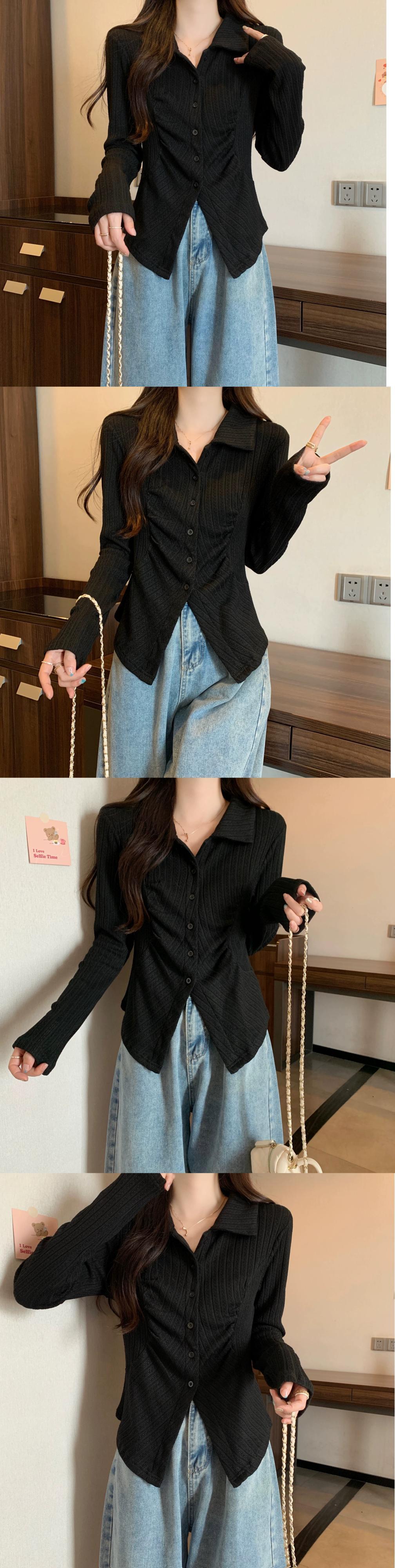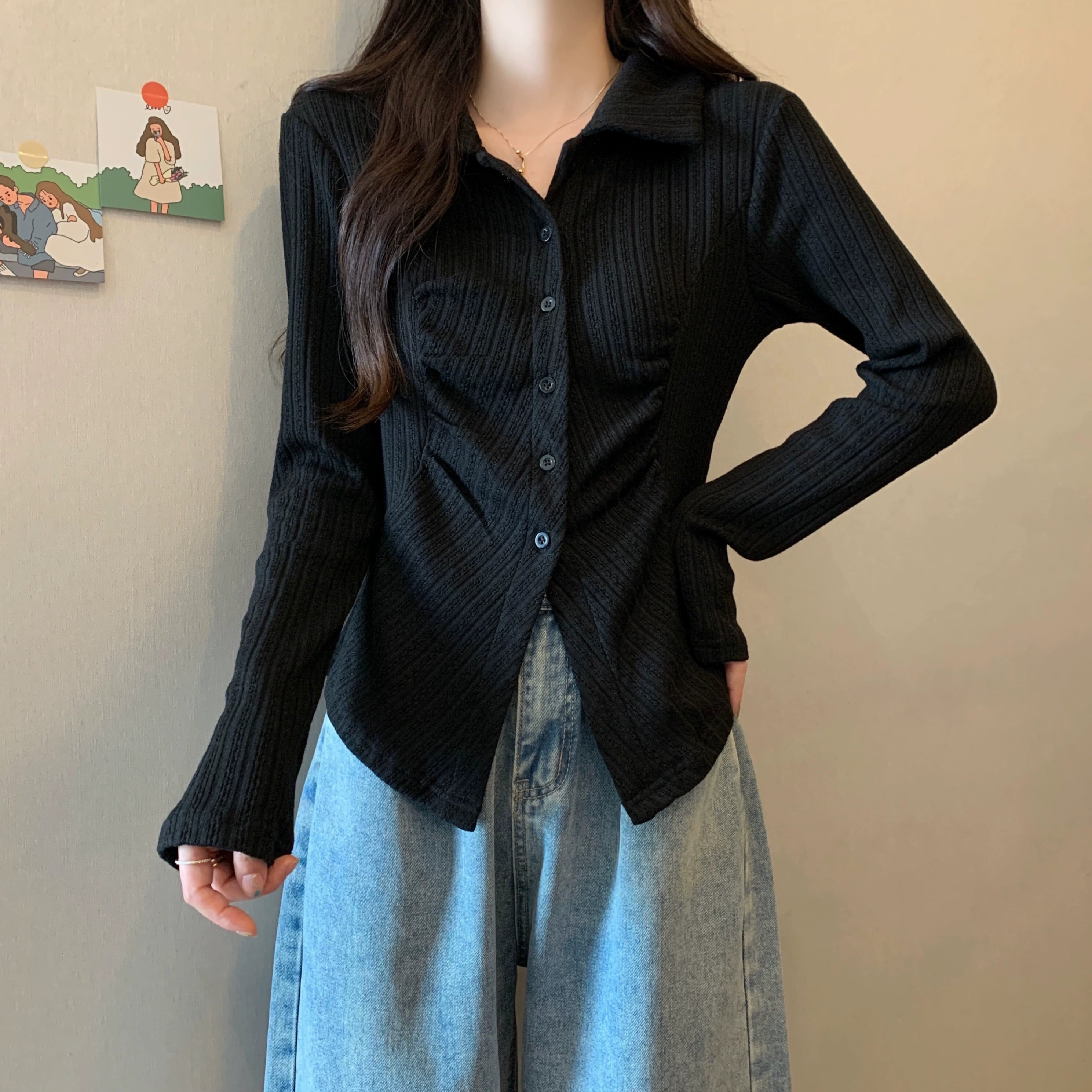 プラスサイズの女性の春の新デザインニッチスリム長袖シャツ太いmmはお腹をカバーし、スリムに見えるポロカラートップ ロング 大きめサイズ スプリング 春物 8884184211102868