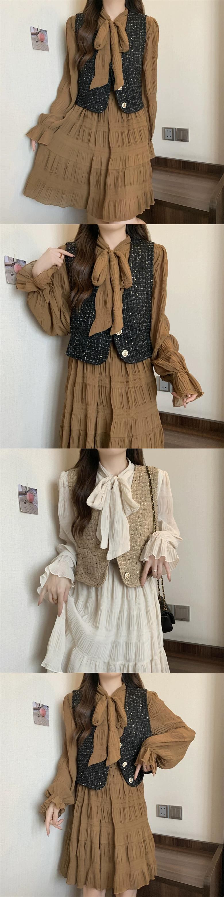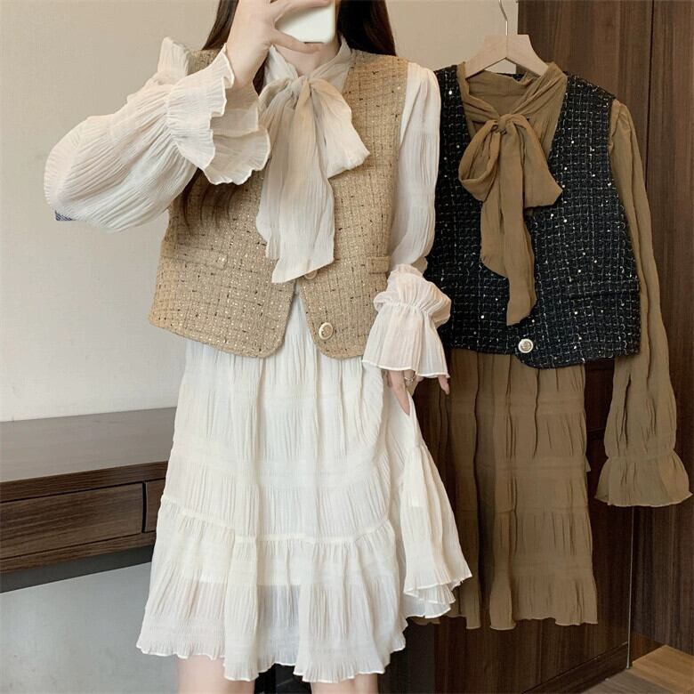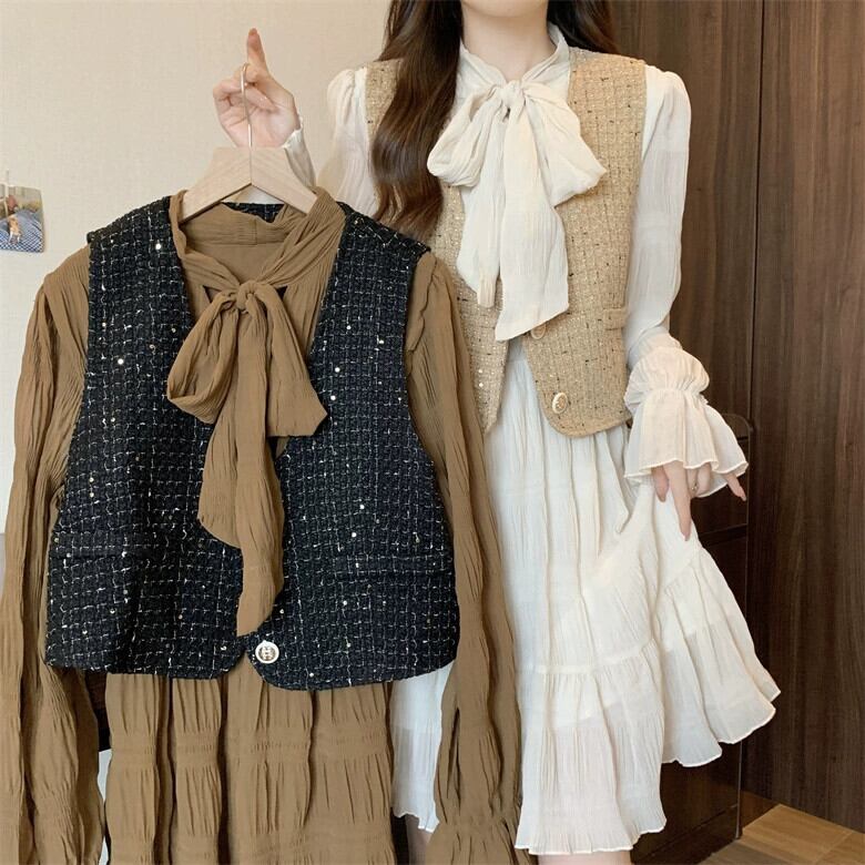 プラスサイズの女性の脂肪 mm 春の新スタイル 2024 ウエスタンスリムベストスプライシングレースアップ股カバードレス 2 点セット 大きめサイズ スプリング 春物 8884140980628547